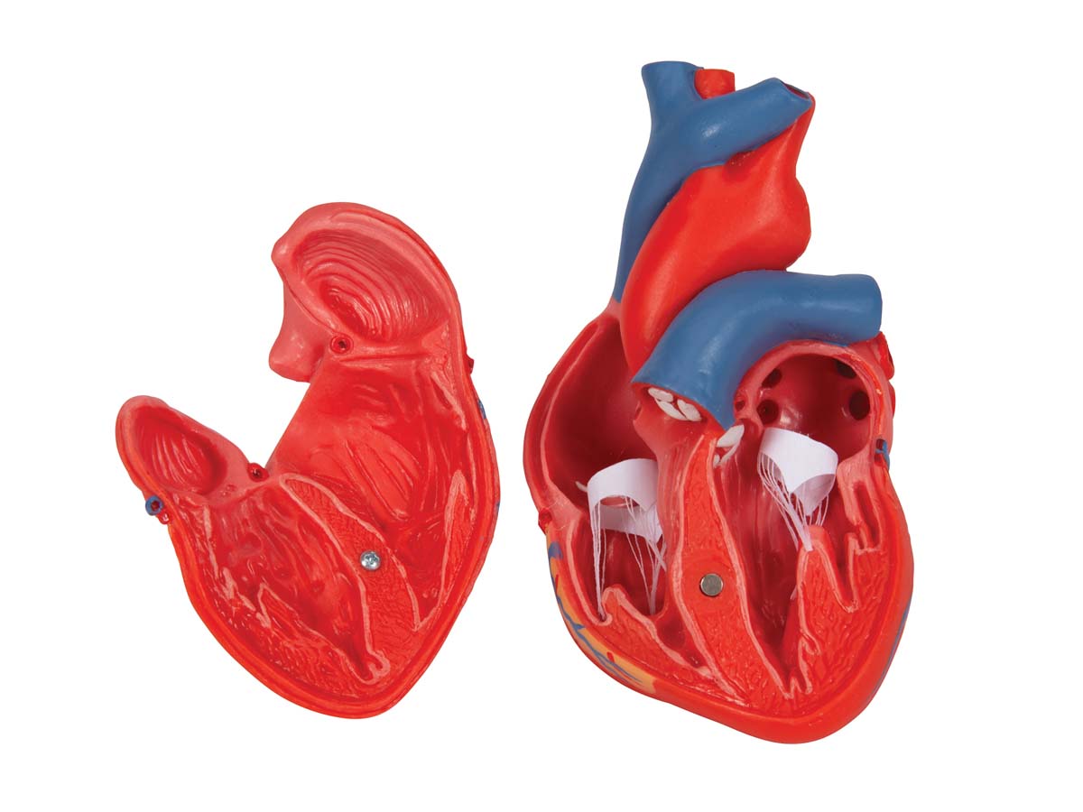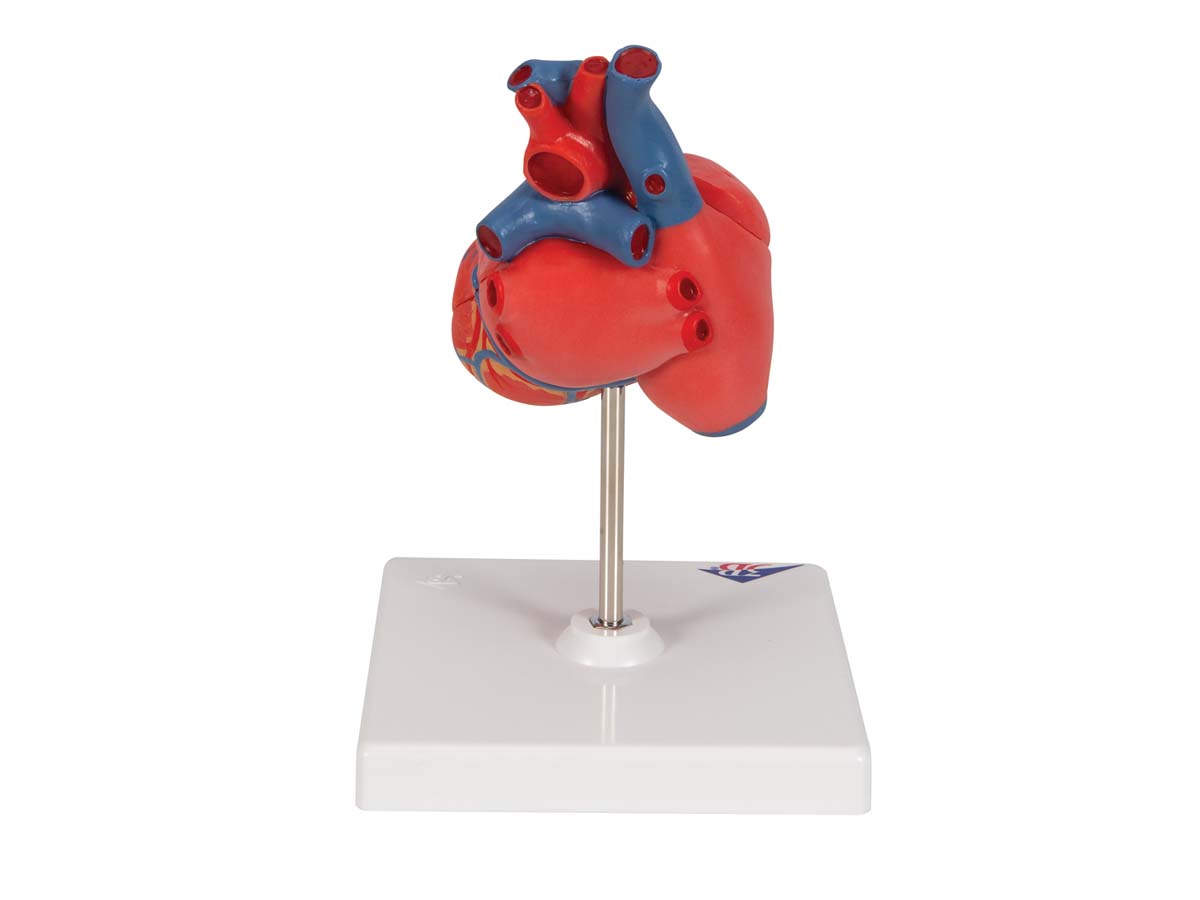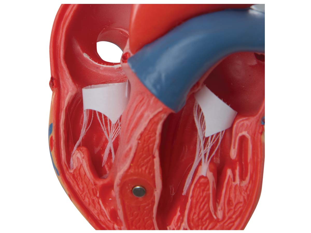 Mit diesem Modell können Sie die Anatomie des Herzens mit Kammern, Vorhöfen, Venen und Aorta detailliert studieren und demonstrieren. Die vordere Herzwand ist zur Ansicht der Kammern abnehmbar. Auf Stativ.