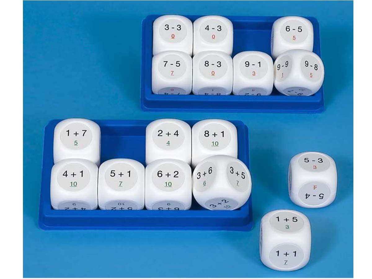 8 Kunststoffwürfel mit Rechenaufgaben – Addition oder Subtraktion