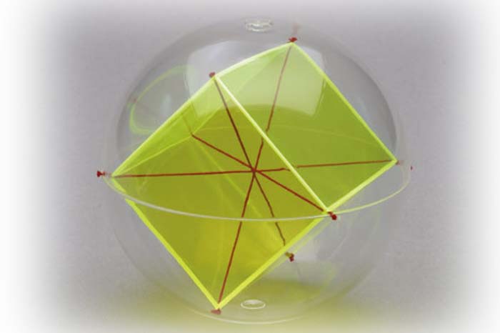 Stichworte: Körper, Mathematik - Klasse 5 bis 12, Einzelmodelle, Kugel, Kugel mit Innenhexaeder + Diagonalfäden
