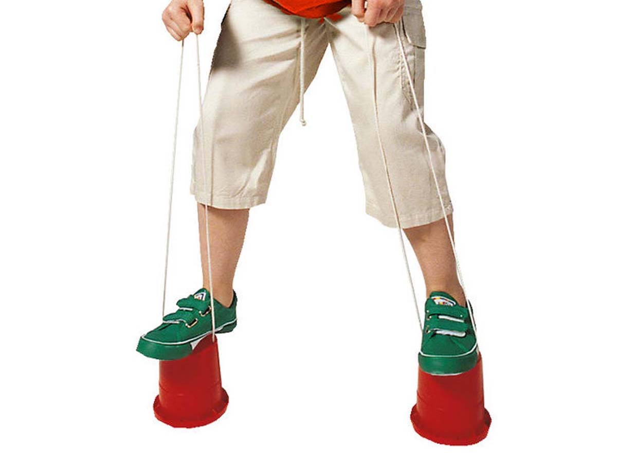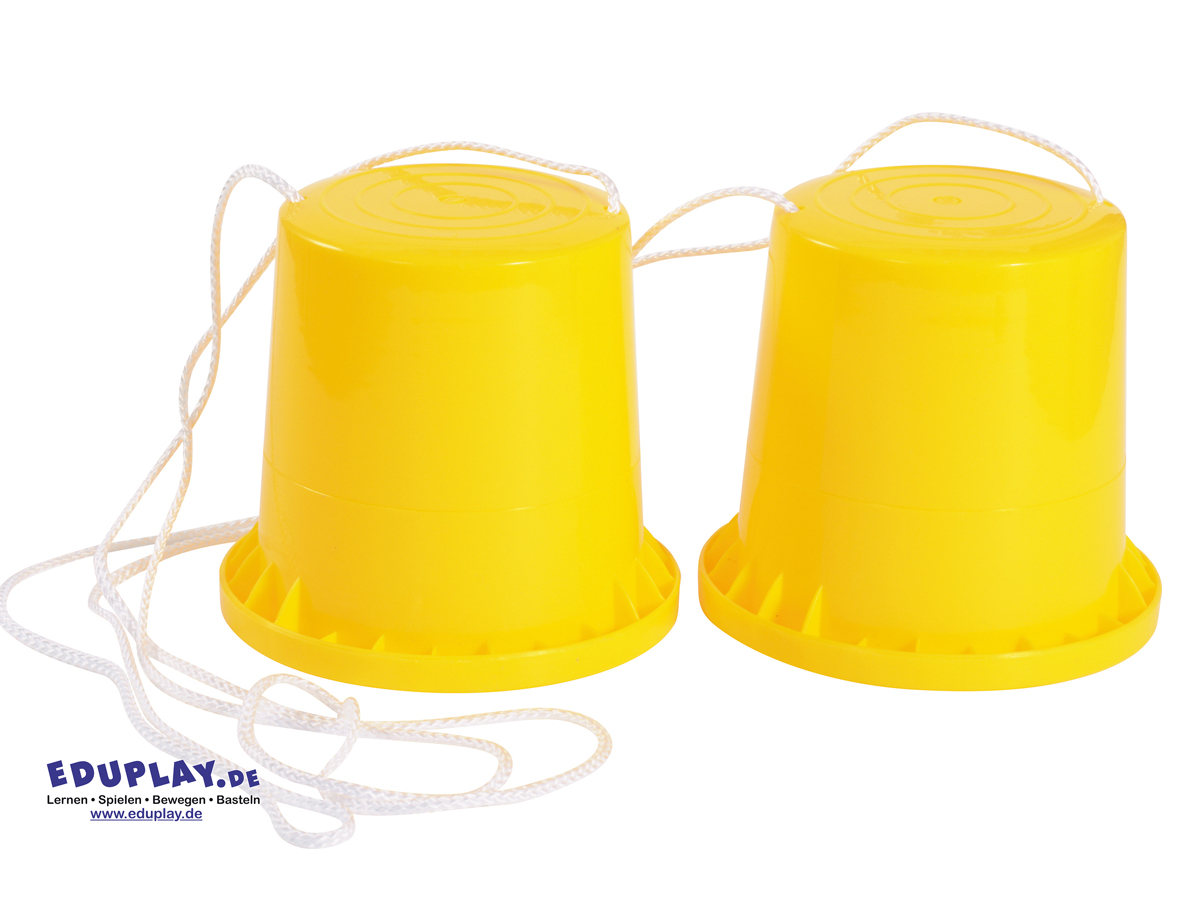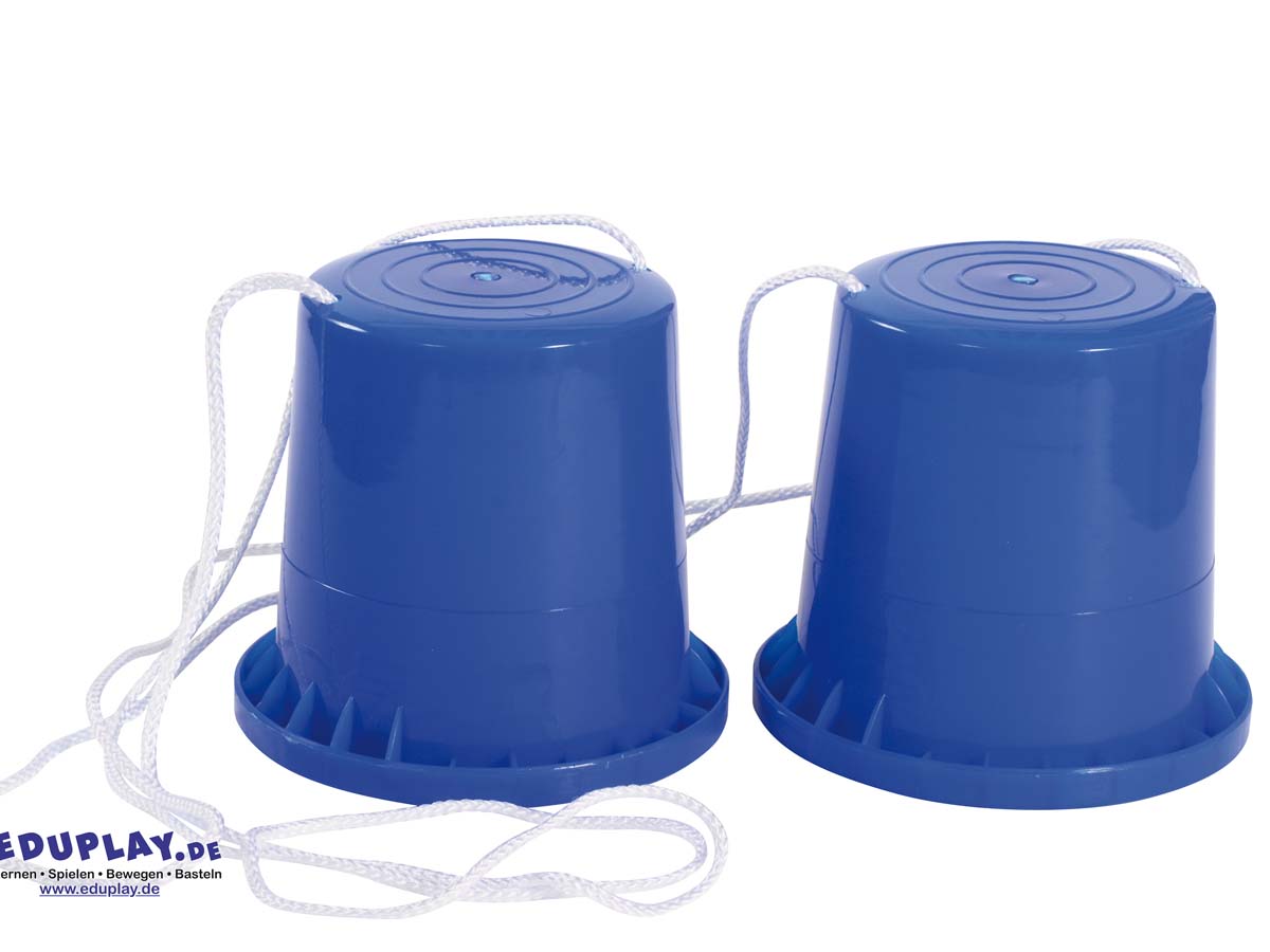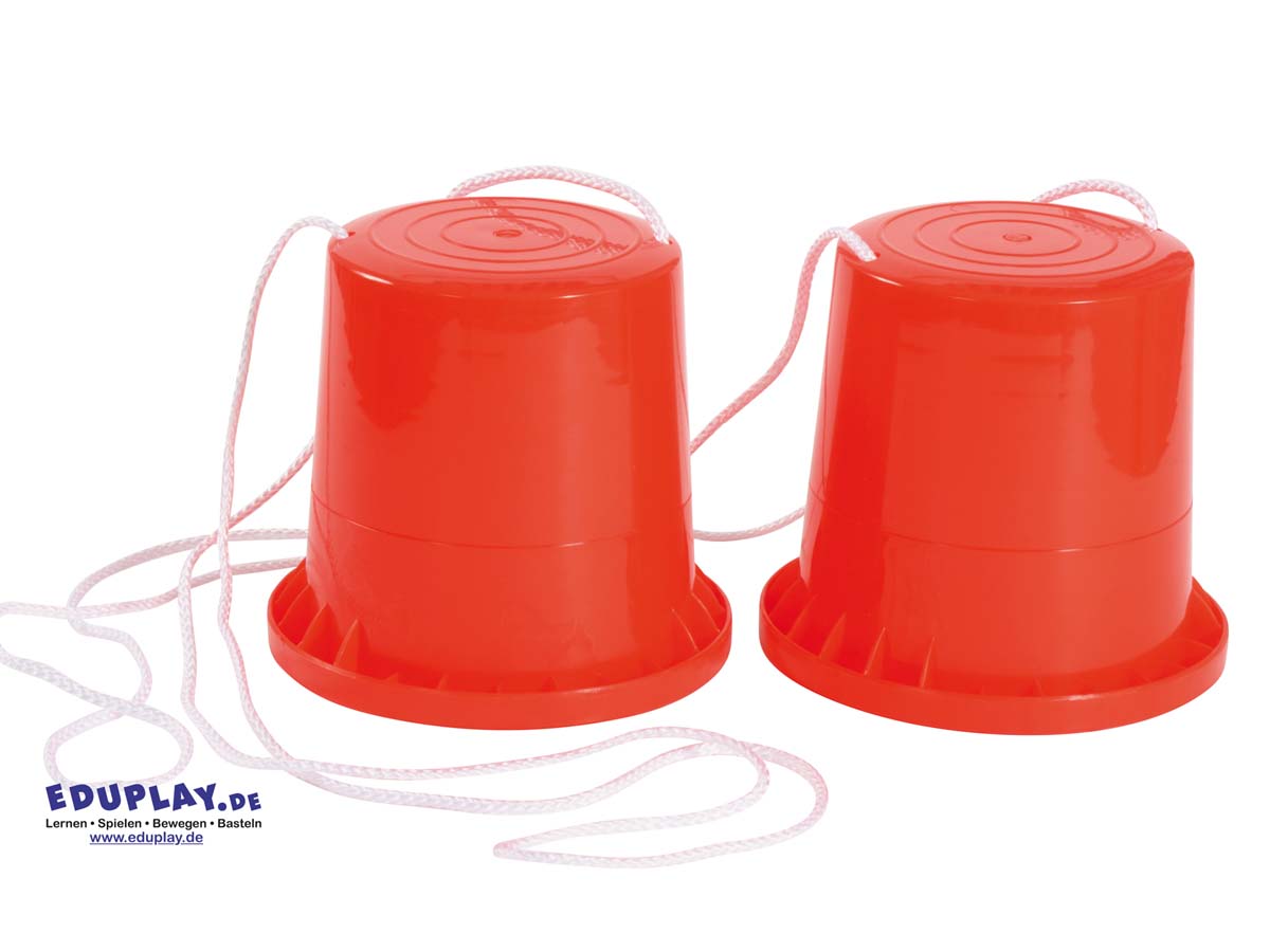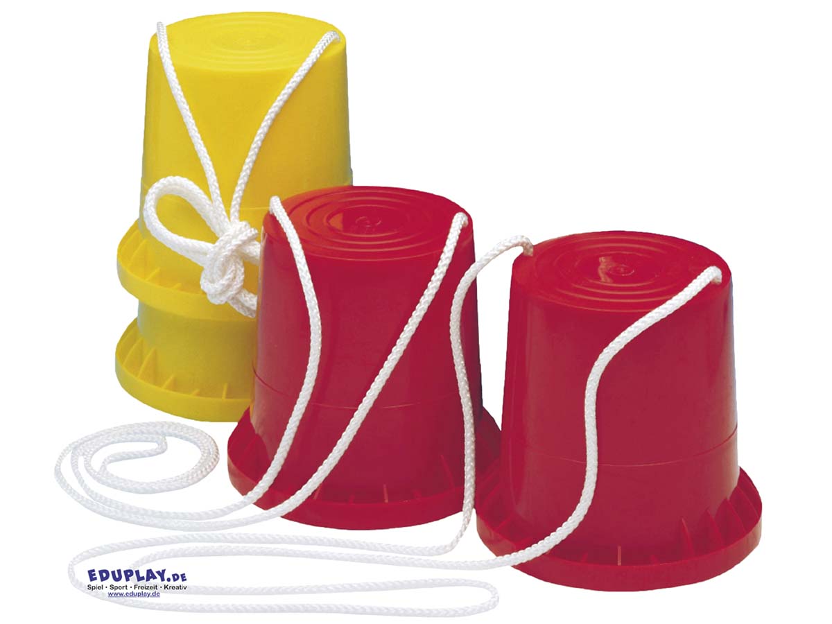 Die Kinder üben mit den stabilen und vielseitigen Dosenstelzen aus Kunststoff das Balancieren.