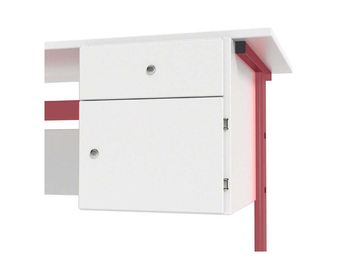 Unterbau rechts, 1 Schub mit Blende außen, darunter 1 Fach, beide abschließbar