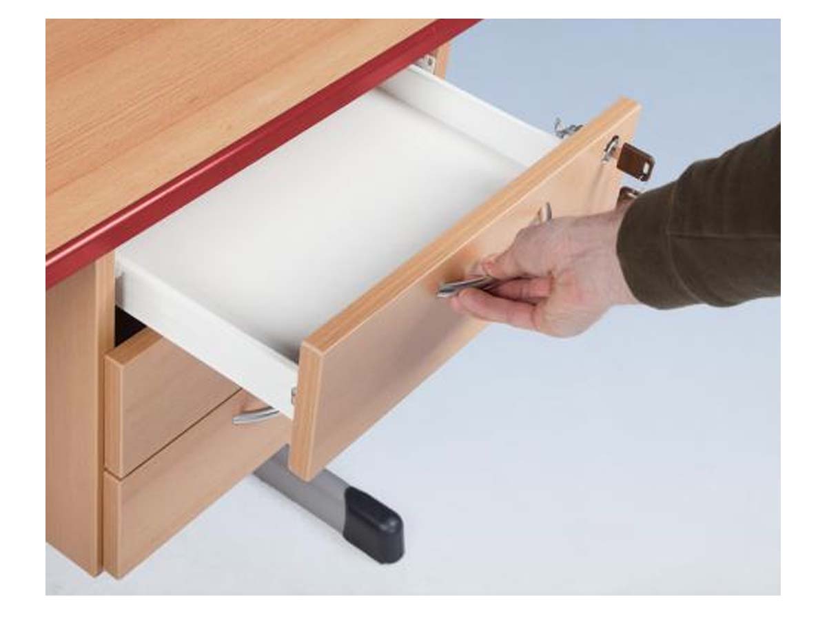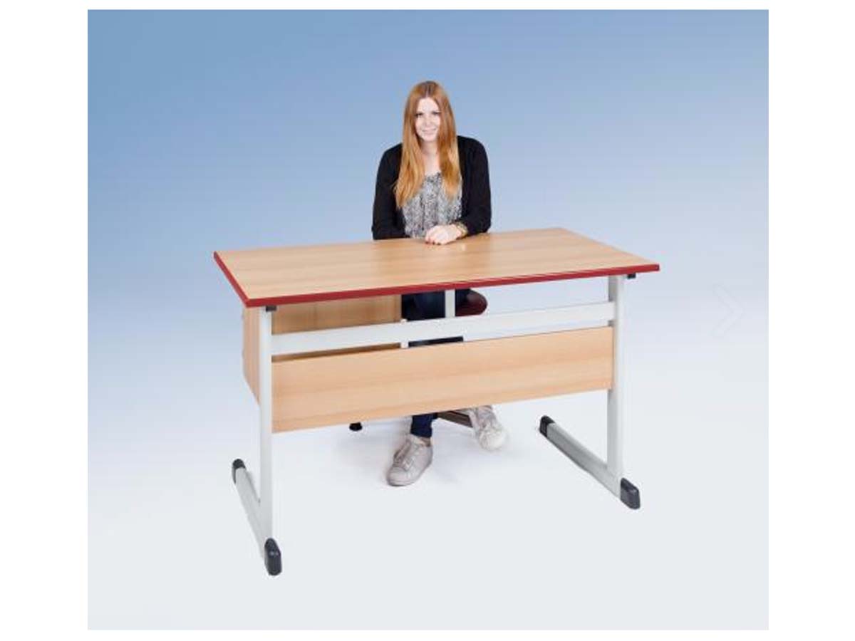 Tischplatten wie mit PU-Sicherheitskante in Graphitgrau oder mit Buche-Massiveinleimer gegen Aufpreis möglich.