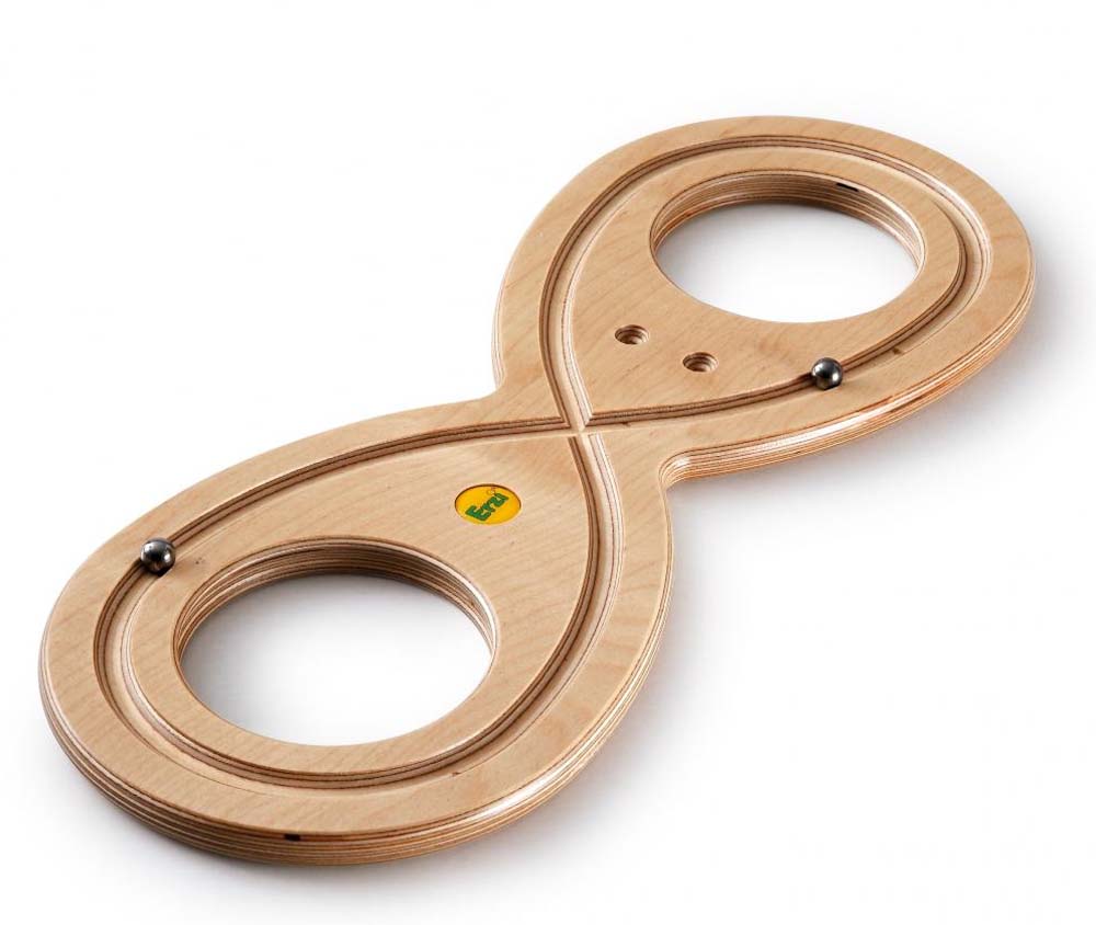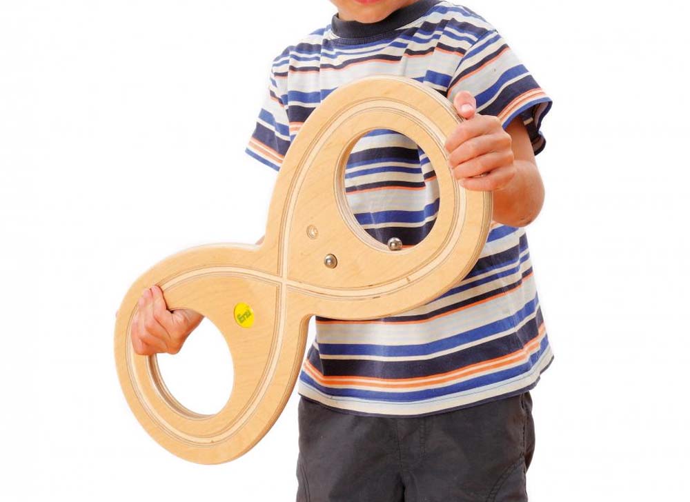 Die Liegende Acht wird vordergründig zur Förderung der Konzentration und der Ausbildung der Handmotorik und des Fingerspitzengefühls eingesetzt. Die innenliegenden Kugelbahnen können zusätzlich noch motorische Übungen im Arm- und Schulterbereich positiv beeinflussen. Damit wird die Beweglichkeit von Kindern und Erwachsenen auf verschiedensten Ebenen in Anspruch genommen. Das 2D- und 3D-Konzept für dieses Produkt wird durch ein beiliegendes Übungsheft sehr gut veranschaulicht.