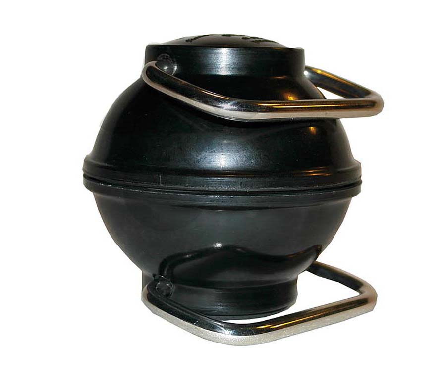 Zum Entlüften der Kugel wird die im Fuß befindliche Ventilschraube durch Rechtsdrehen geschlossen und die Kugel auf den Luftpumpenteller aufgesetzt.