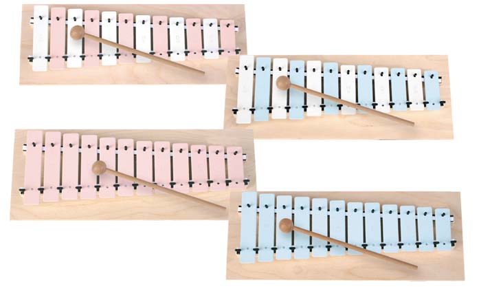 | Klangplatten | blau, blau/weiß, rosa, rosa/weiß |