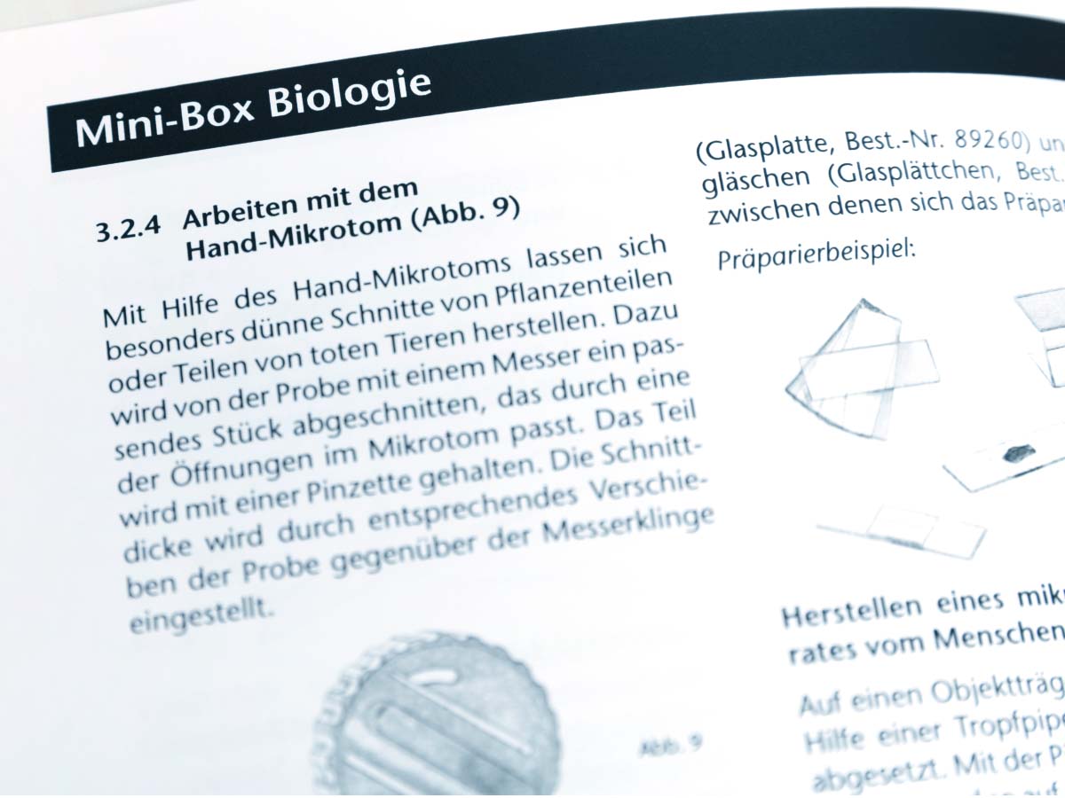 Die mitgelieferte Anleitung beinhaltet Gebrauchsanweisungen für alle Geräte. Zahlreiche Vorschläge für mögliche Untersuchungen werden ausführlich beschrieben und vereinfachen den Weg in die Welt des Mikrokosmos.