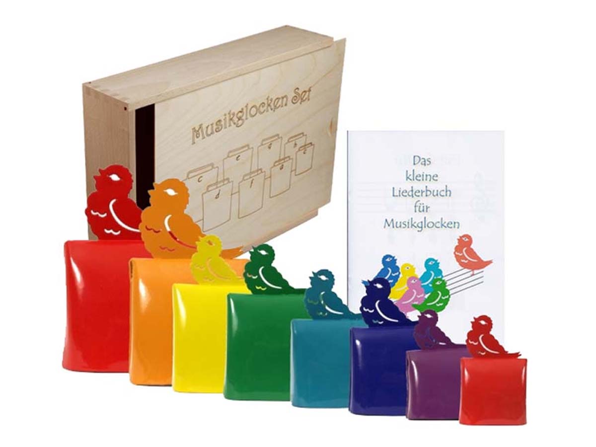 Musikglockensatz bunt in Holzkiste