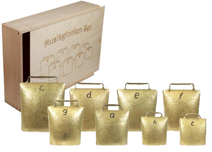 Stichworte: Musik, Musikglockensatz MG 01 in Holzkiste, Musikglocken, Rhythmik-Instrumente