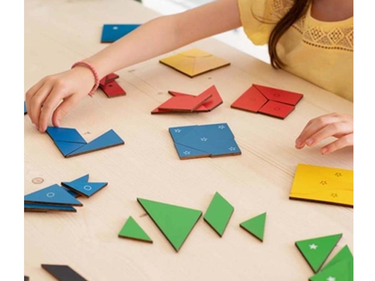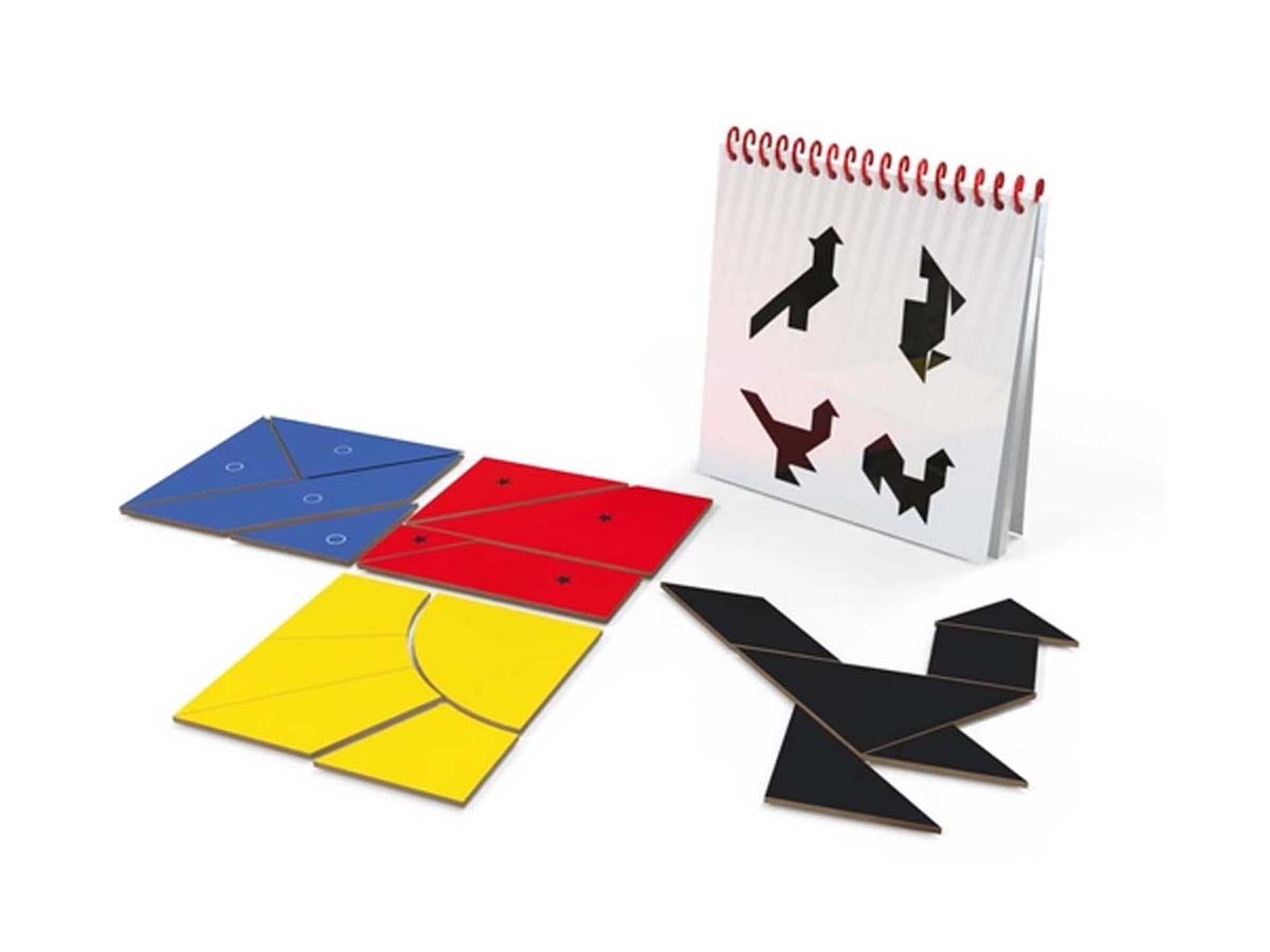 Es beginnt mit nur 2 Teilen und führt hin zum 7-teiligen Quadrat, dem chinesischen Tangram.