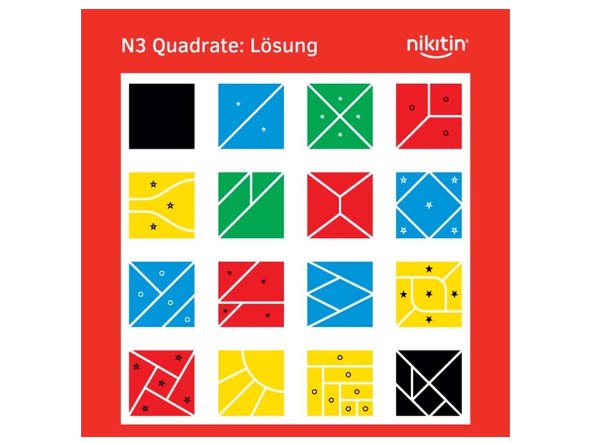 16 Quadrate werden aus immer anderen farbigen Holzteilen zusammengesetzt.