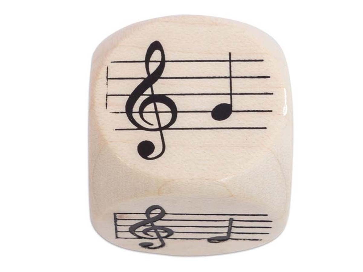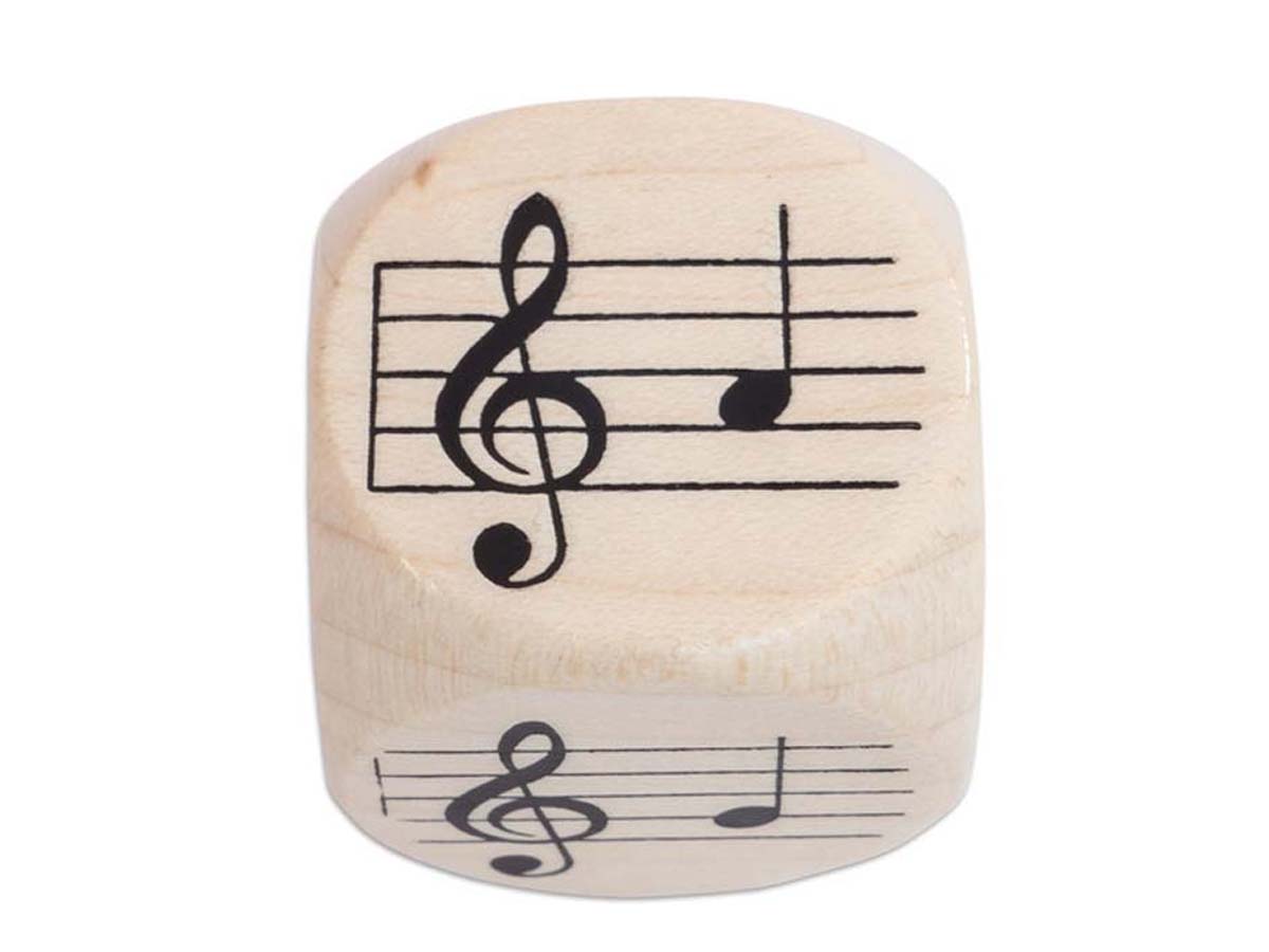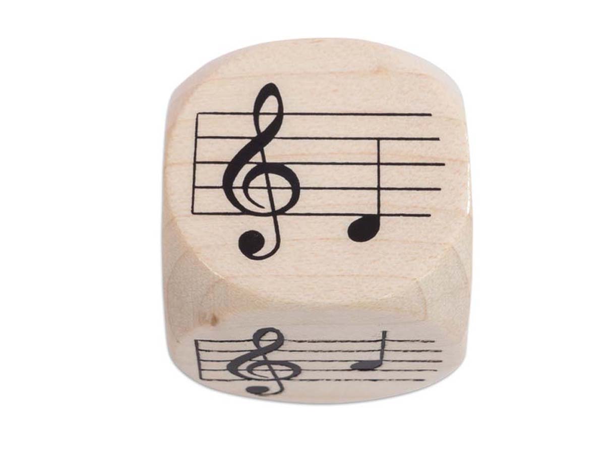 Großer Würfel mit eingeprägten Notenbildern: c, d, f, g, a, c.