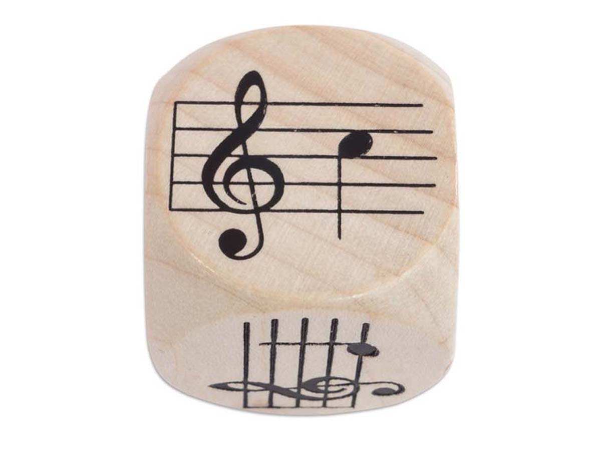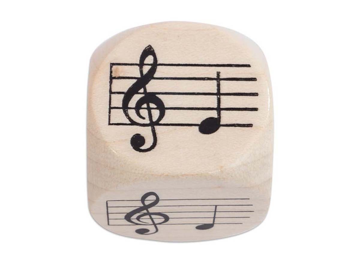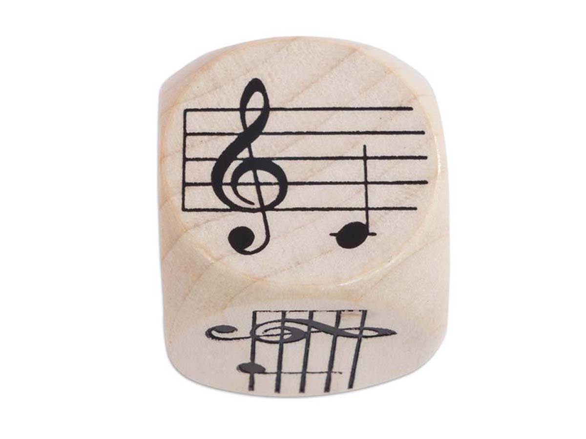Großer Würfel mit eingeprägten Notenbildern: c, d, f, g, a, c.