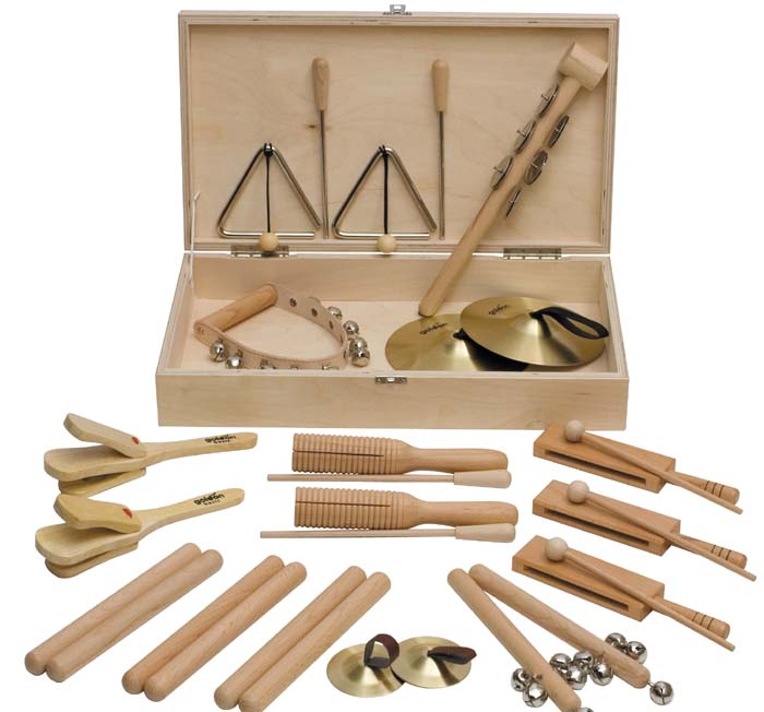 Stichworte: Musik, im Holzkasten, Rhythmik-Sets, Perkussions-Set - Set 4