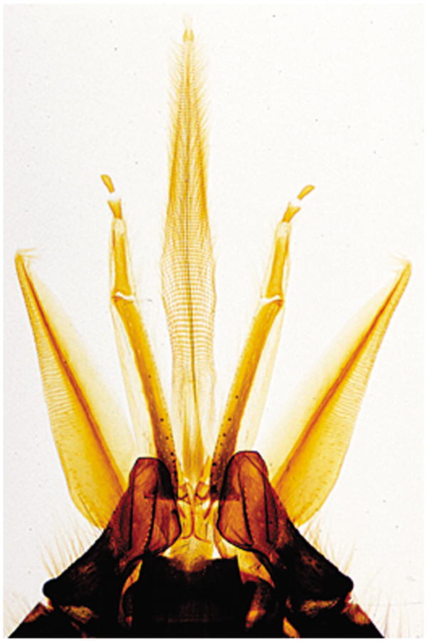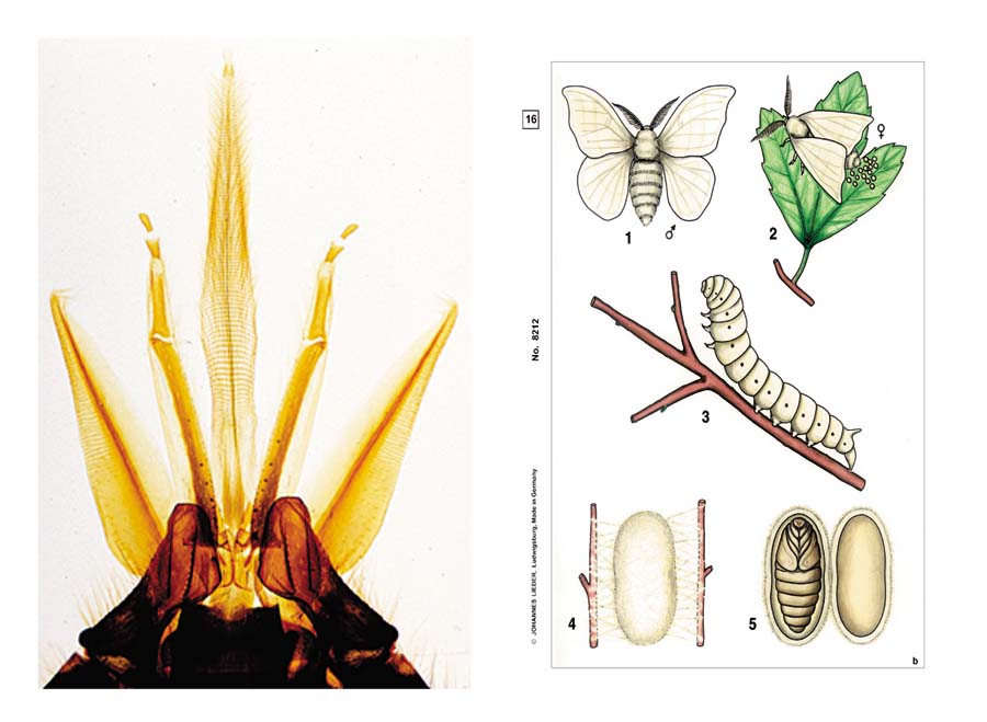 1. Stubenfliege, Kopf und Mundwerkzeug – 2. Honigbiene, Vorder- und Hinterflügel – 3. Stubenfliege, Bein total –