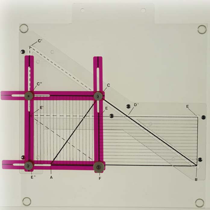 Projektionsmodell zur Beweisführung des Höhensatzes im rechtwinkligen Dreieck mittels Flächenverwandlung.