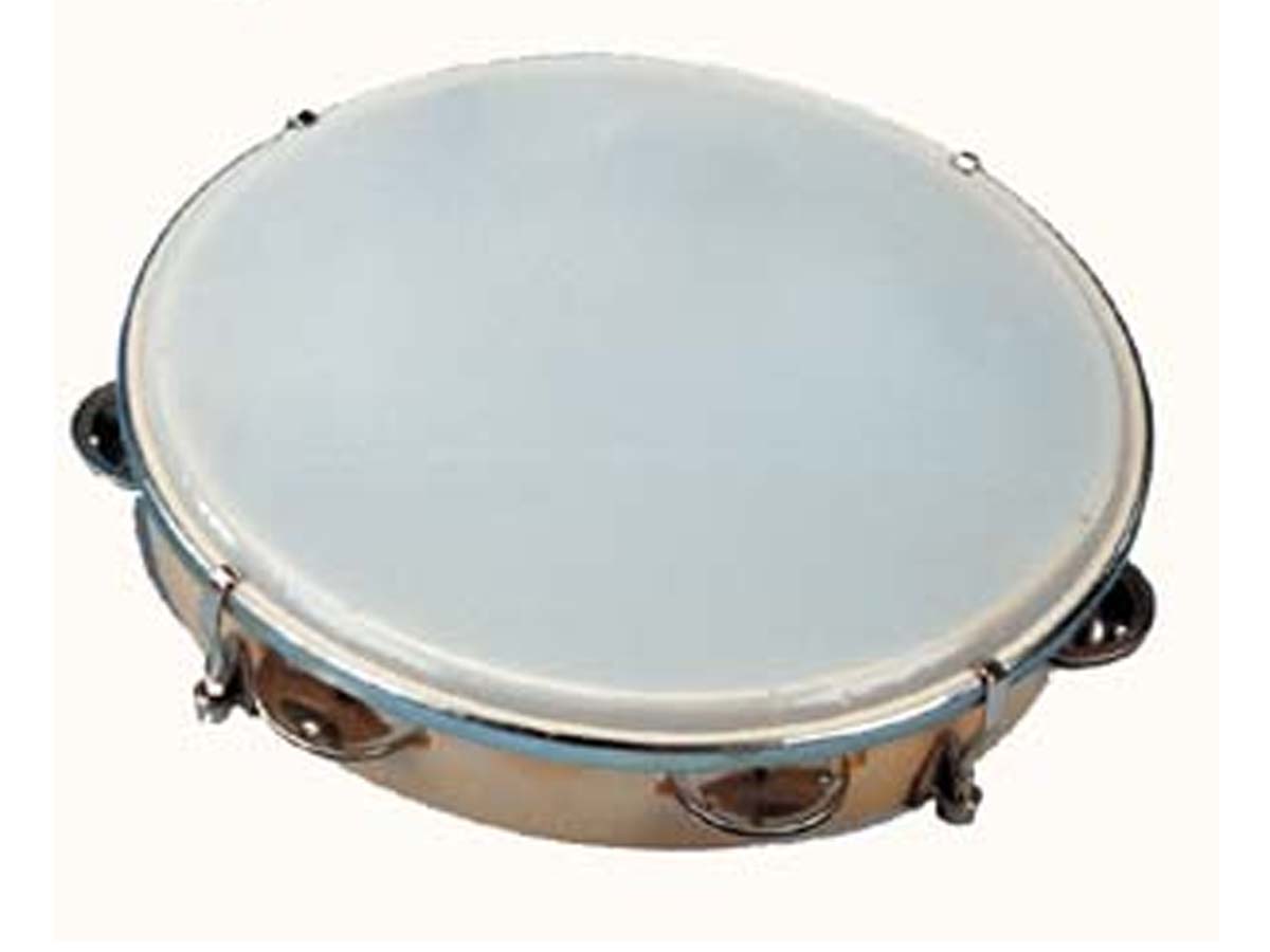 Rahmentrommel aus Kunststoff, spannbar mit Plastikfell 21 cm ø, 6 Paar Schellen.