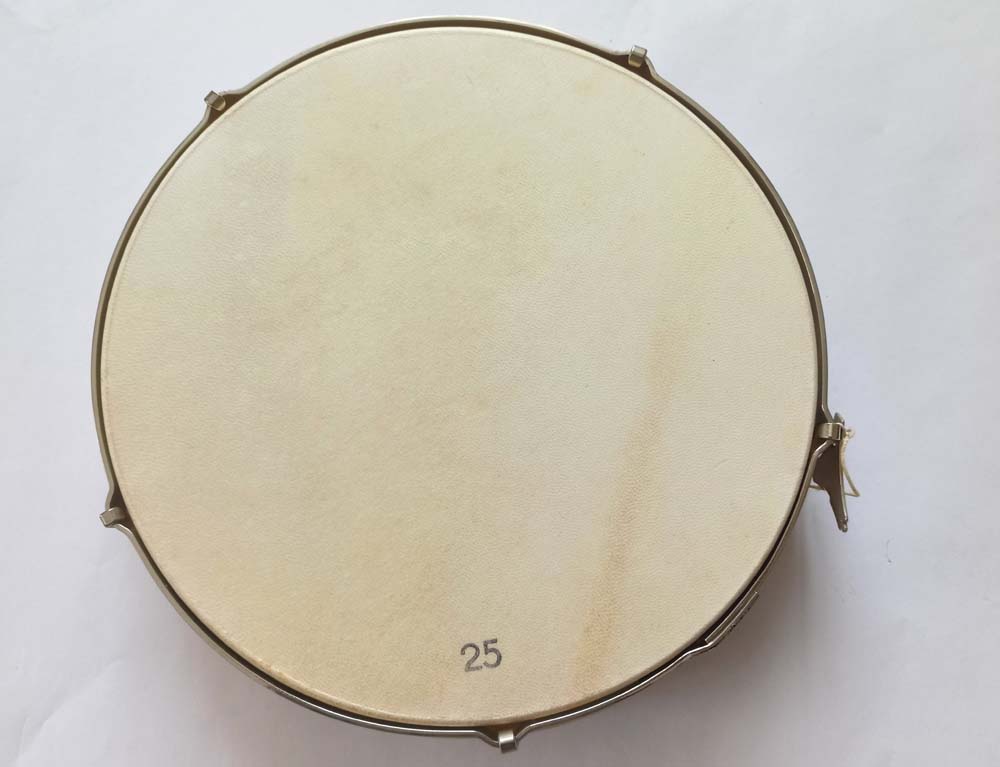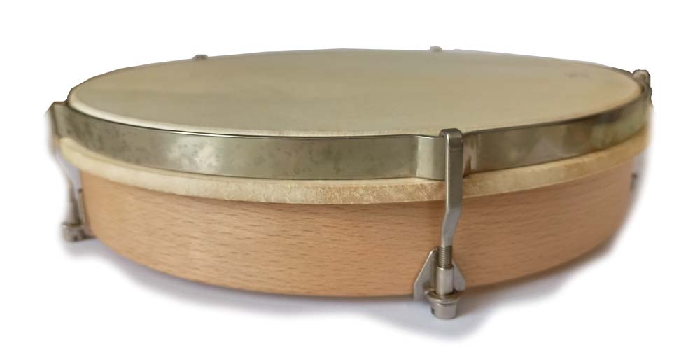 Rahmentrommeln, Naturfell Ø 25 cm, ohne Schellen eingeleimter Handgriff spannbar mit Schlüssel, Esche-/Ahornholzreif