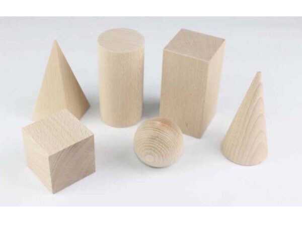 6 Teile aus Buchenholz Rastermaß: 50 mm Pyramide, Zylinder, Quader, Würfel, Kugel und Kegel