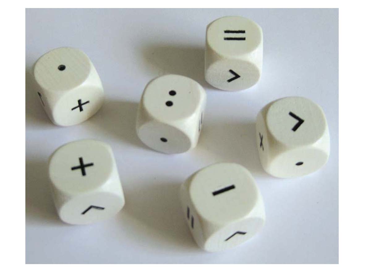 Verschiedene Würfel mit folgenden Rechenzeichen:
