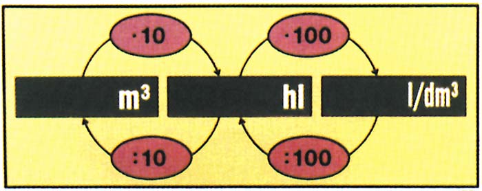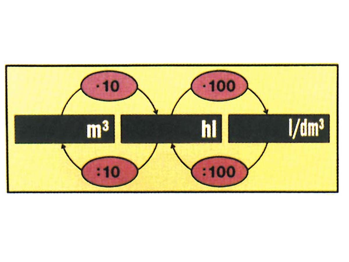 Übungstafel aus Kunststoff zur Umrechnung der Hohlmaße.