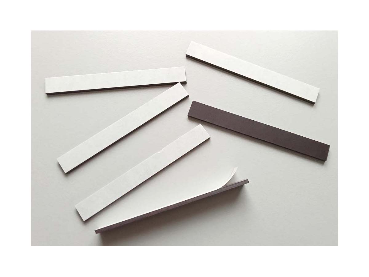 6 Magnetstreifen: ca. 8,5 cm x 1 cm Klebefolie entfernen und auf die Rückseite Zeichengeräte aufkleben