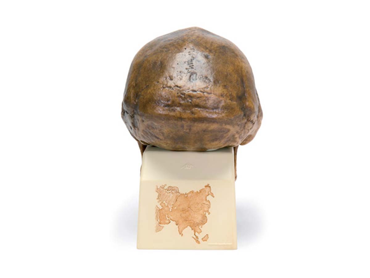 Dieser Schädel ist der detailgetreue Abguss der Sinanthropus-Rekonstruktion nach Weinert, welche anhand der Aufzeichnungen von Black und Weidenreich modelliert wurde, nachdem sämtliche Originalknochen verloren gegangen waren. Der Sinanthropus gehört zum Genus Homo erectus pekinensis (Sinanthropus pekinensis) und kann als Vertreter des Frühmenschen gesehen werden.