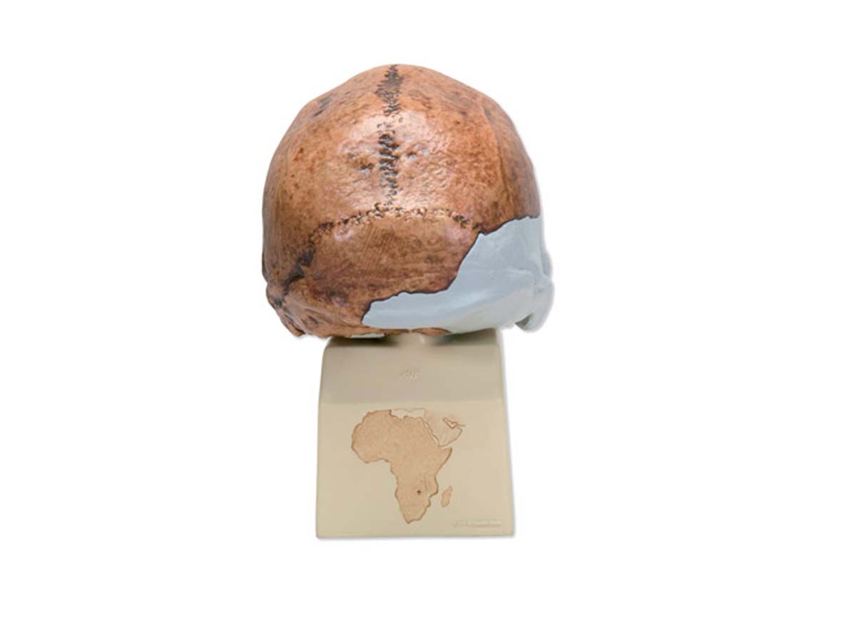 Der Schädel ist die exakte Abformung der Rekonstruktion des Schädels, dessen Original 1921 in einer Erzmine in Broken Hill, Nordwest-Rhodesien (heute: Kabwe in Zambia) gefunden wurde. Es handelt sich um einen früh-archaischen Homo sapiens rhodesiensis oder einen Homo erectus rhodesiensis, Anzeichen sind für beide Formen vorhanden. Daher auch die starken Schwankungen bei der Altersangabe, die unterschiedlichen wissenschaftlichen Ansätzen zuzuordnen sind. Vertreter des früh-archaischen Homo sapiens (Zuordnung nach Henke und Rothe 1994) bzw. Homo erectus rhodesiensis. Fundort: Höhle einer Erzmine in Broken Hill, heute Kabwe in Zambia Fundzeit: 1921 Alter: wahrscheinlich 150.000 bis 300.000 Jahre, früher wurde angenommen 40.000 bis 60.000 Jahre