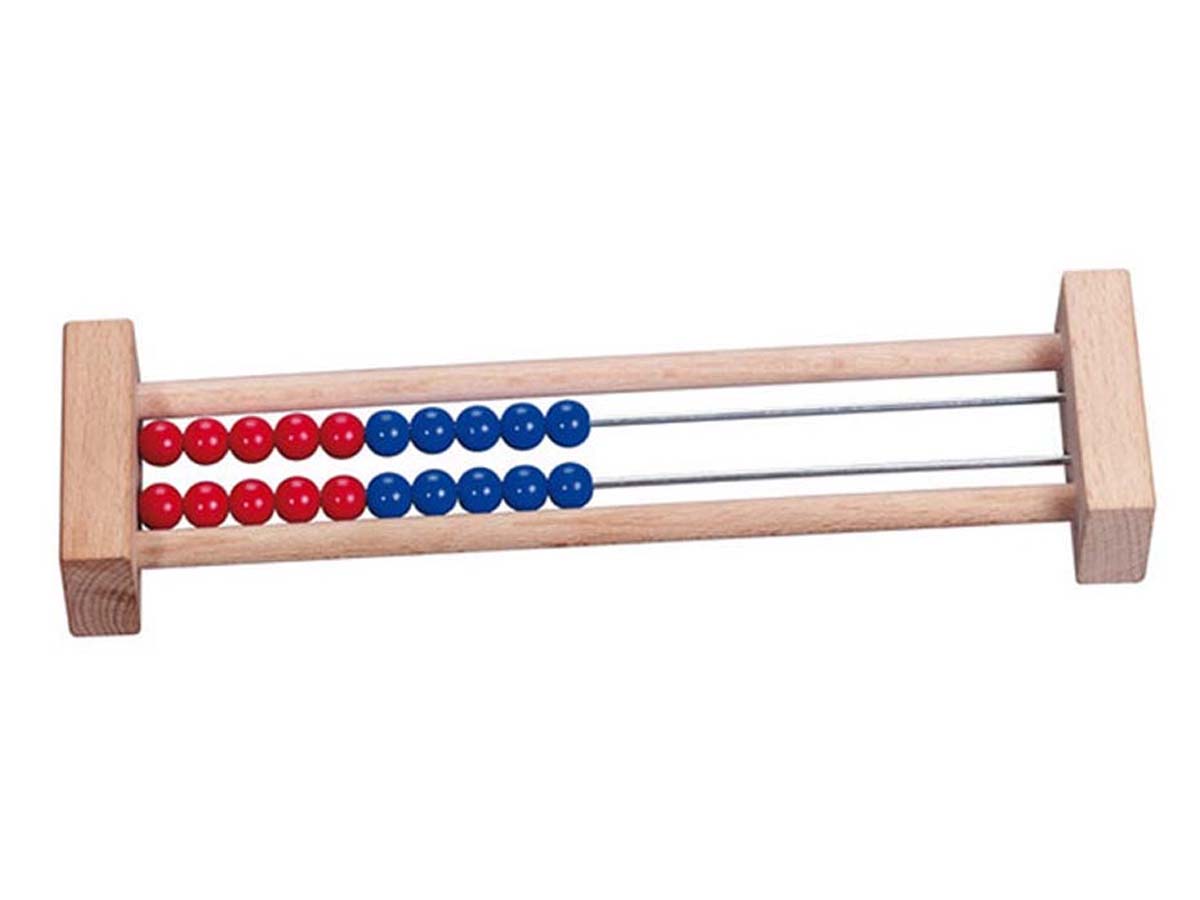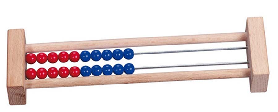 Durch das Verschieben der weißen und roten Kunststoffkugeln lernen die Schüler den Zahlenraum 20 kennen.