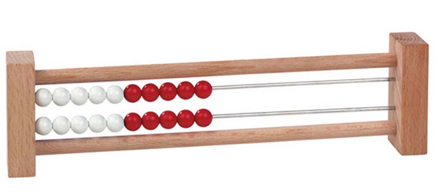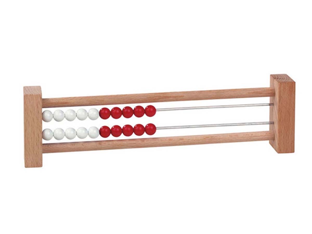 Durch das Verschieben der weißen und roten Kunststoffkugeln lernen die Schüler den Zahlenraum 20 kennen.