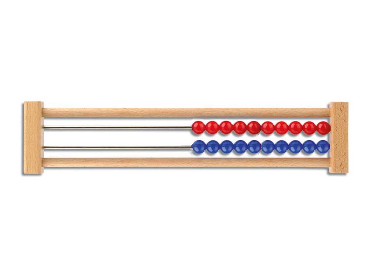 Durch das Verschieben der weißen und roten Kunststoffkugeln lernen die Schüler den Zahlenraum 20 kennen.