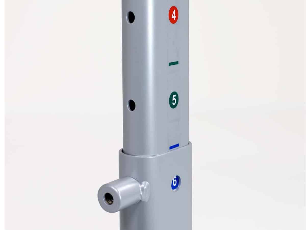 – Mittelsäule aus Ovalrohr mit integrierter Größenkennzeichnung, Standkufen aus Ovalrohr