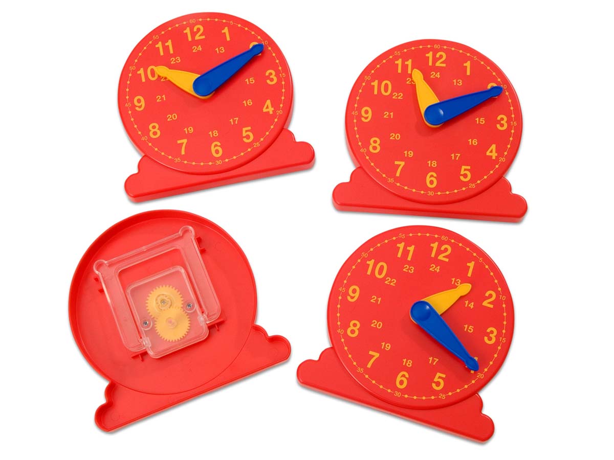 Auch als Klassensatz: 1 Lernuhr und 25 Schüleruhren sowie einer Unterrichtsmappe „Zeit erfahren, messen, rechnen“ erhältlich.
