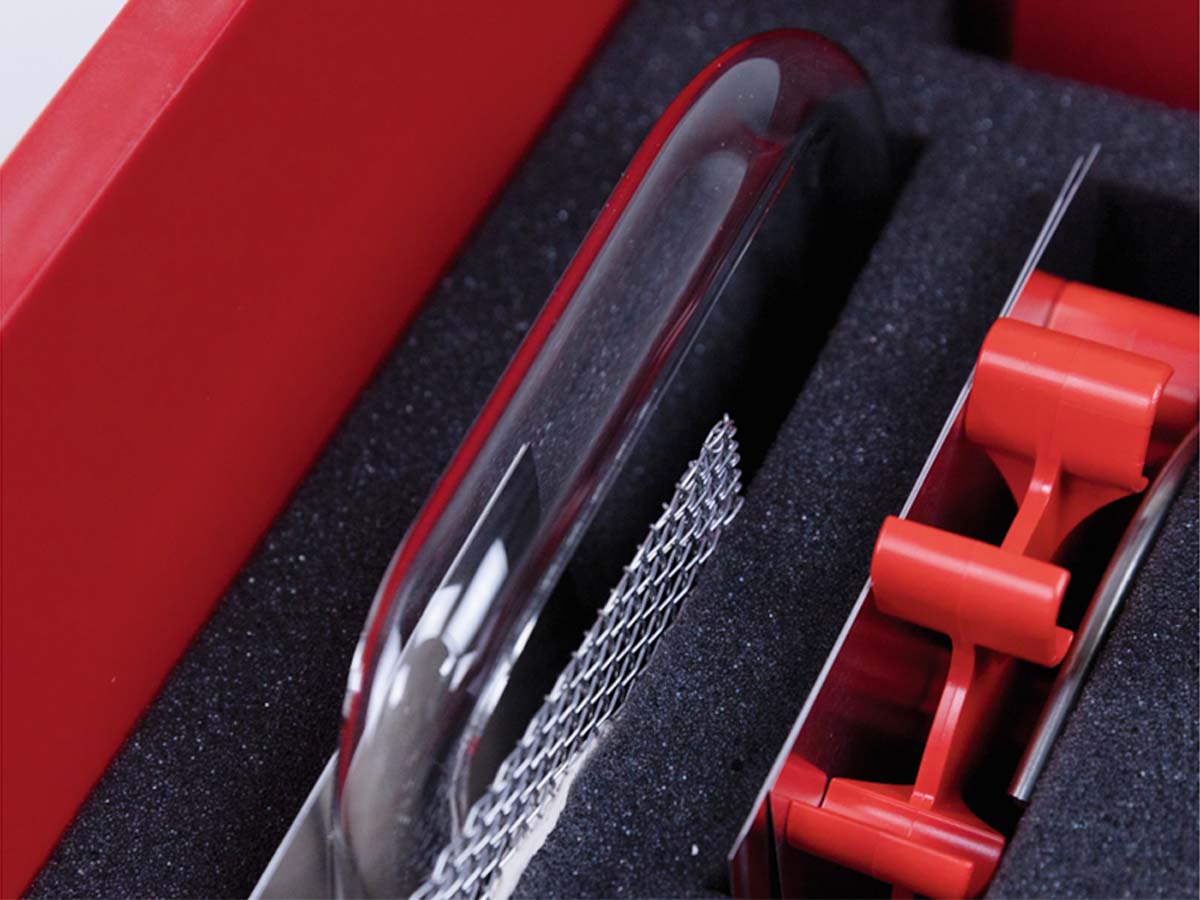 Mehr als 30 Einzelteile sind in einer Kunststoffwanne (312 x 427 x 150 mm) mit Schaumstoff-Formeinsatz und transparentem Deckel untergebracht.