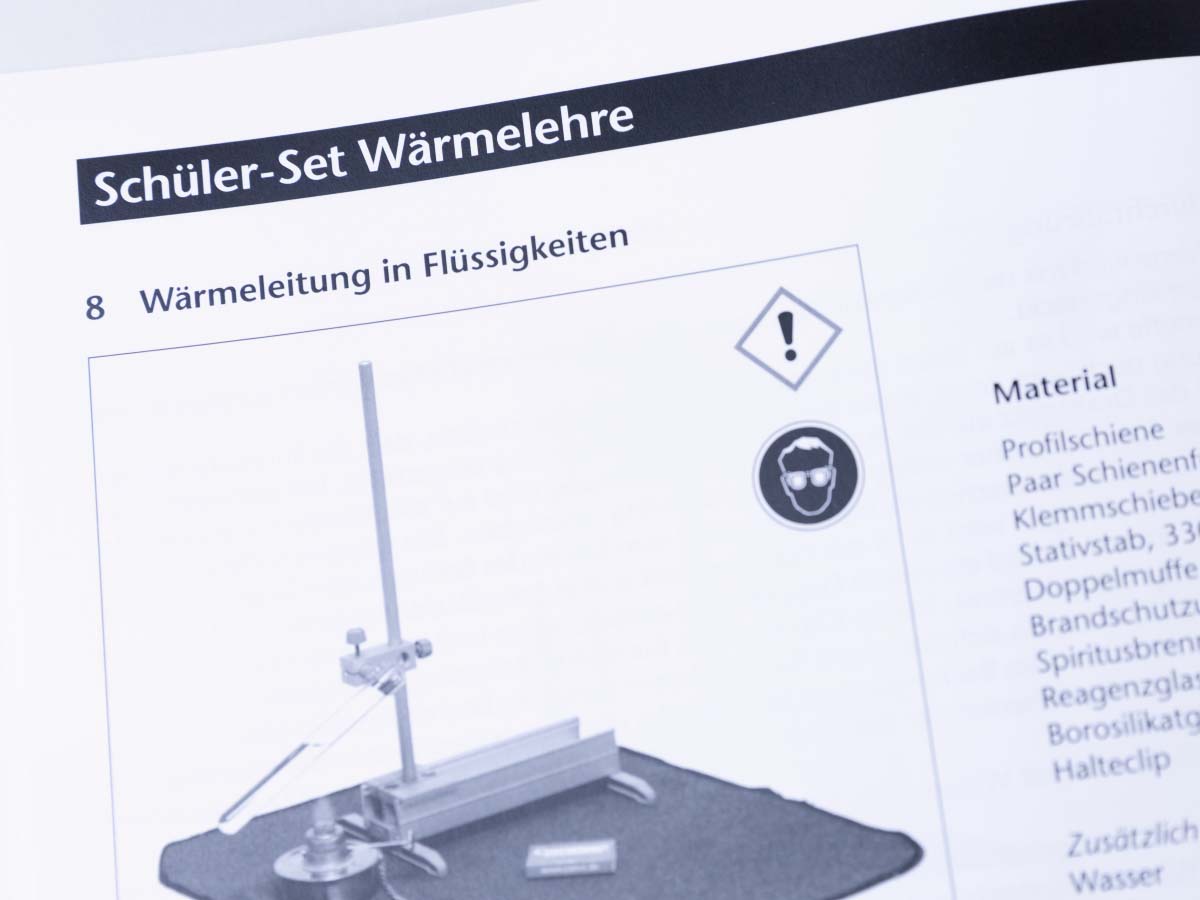 Der Schülerexperimentier-Gerätesatz „Kalorik“ wird mit einer ausführlichen Versuchsanleitung und Lehrerhandreichung geliefert.