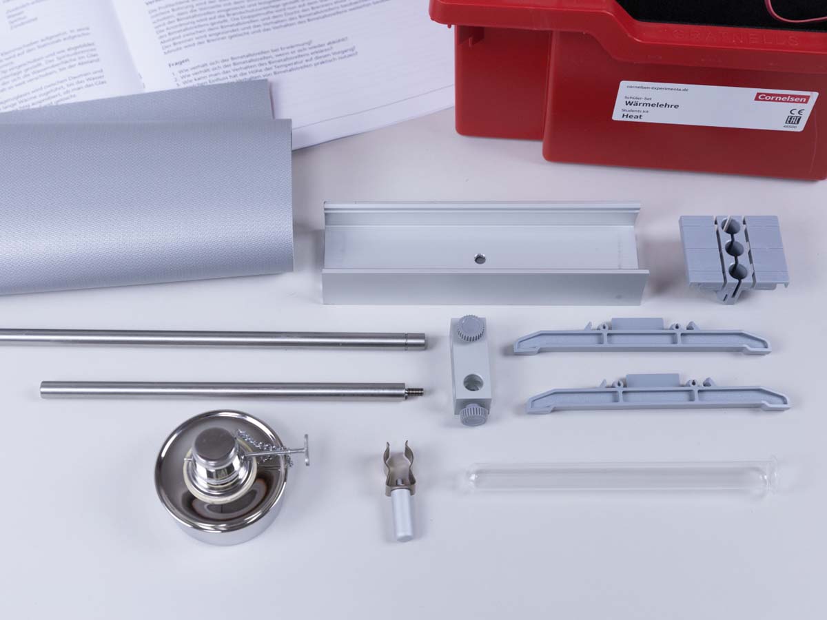 Der Experimentiersatz Kalorik enthält Geräte und Materialien für 20 grundlegende Versuche aus der Wärmelehre mit festen, flüssigen und gasförmigen Stoffen.