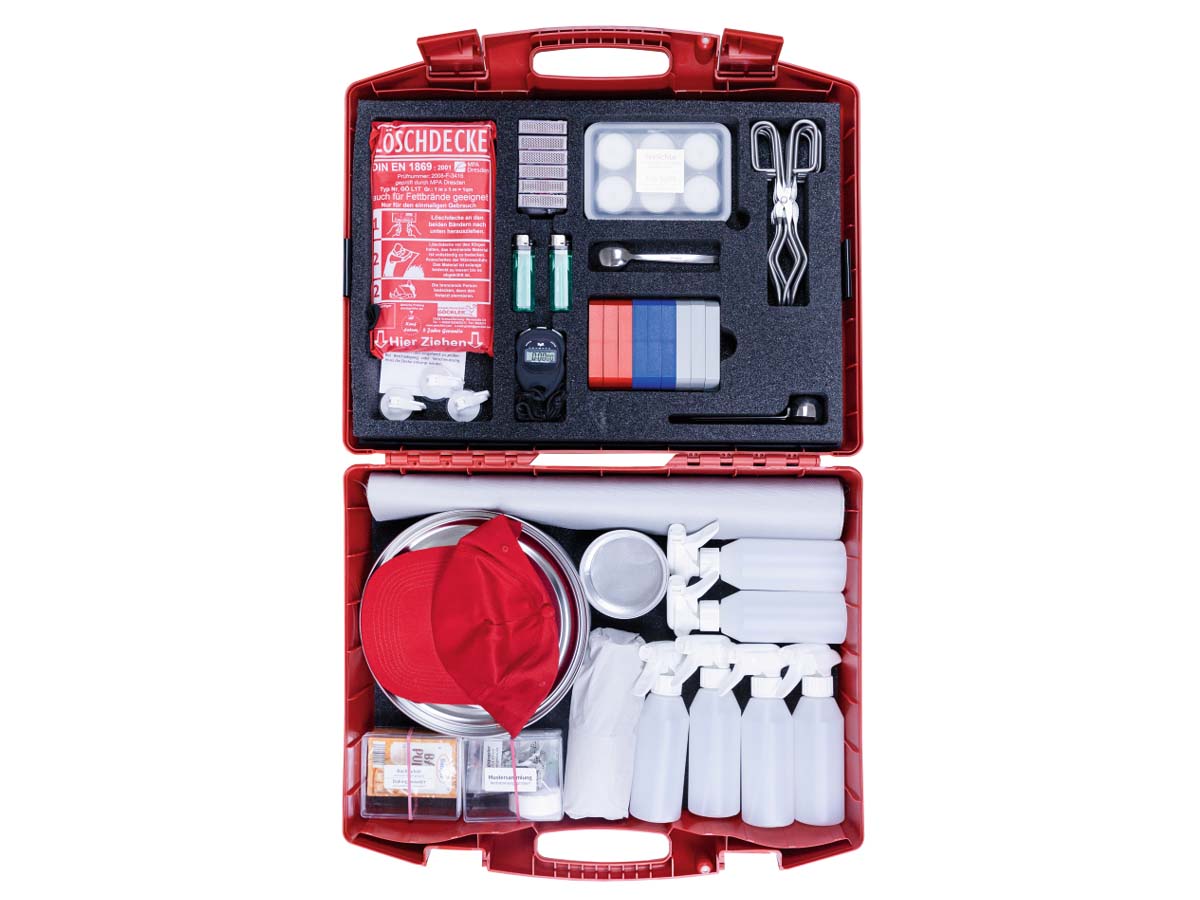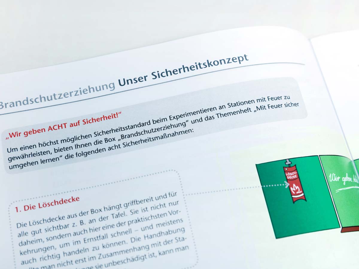 Die Zusammenstellung der Materialien der Experimentierbox wurde in enger Zusammenarbeit mit der Feuerwehr nach neuesten Erkenntnissen des Brandschutzes entwickelt. Kinder der 3. und 4. Klasse können so mit unter Aufsicht durchgeführten, ungefährlichen Versuchen ihre „Feuerkompetenz„ erwerben.