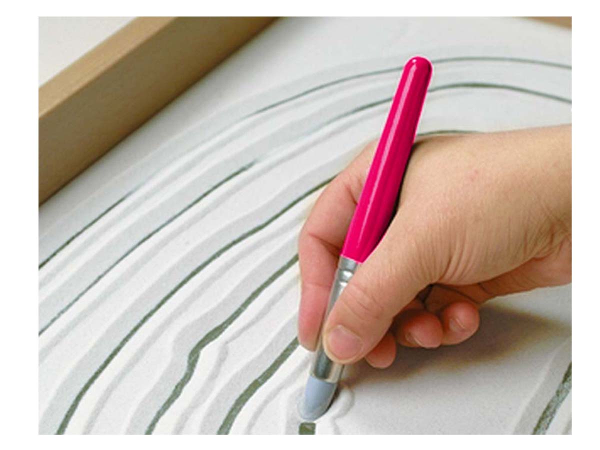 Auch ganz präzise Linien bleiben in diesem feinen Sand bestehen, sodass jede Handschrift zu einem kalligraphischen Kunstwerk wird.