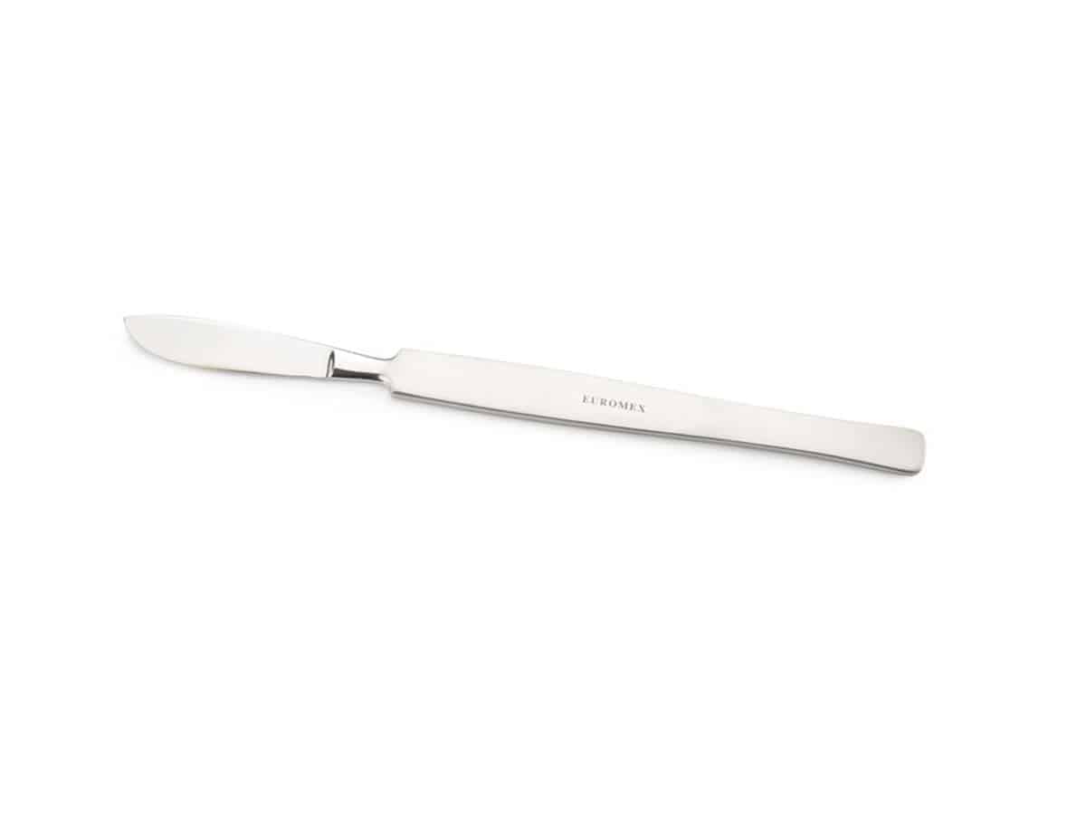 Das Skalpell ist aus rostfreiem Stahl hergestellt. Mit stumpfer Spitze, Edelstahlgriff, Länge: 150 mm