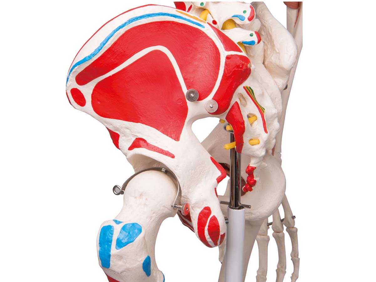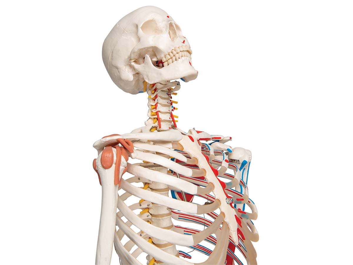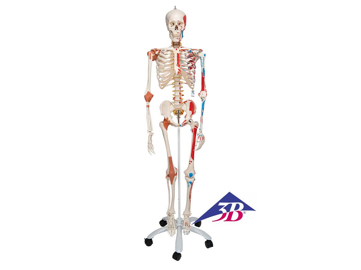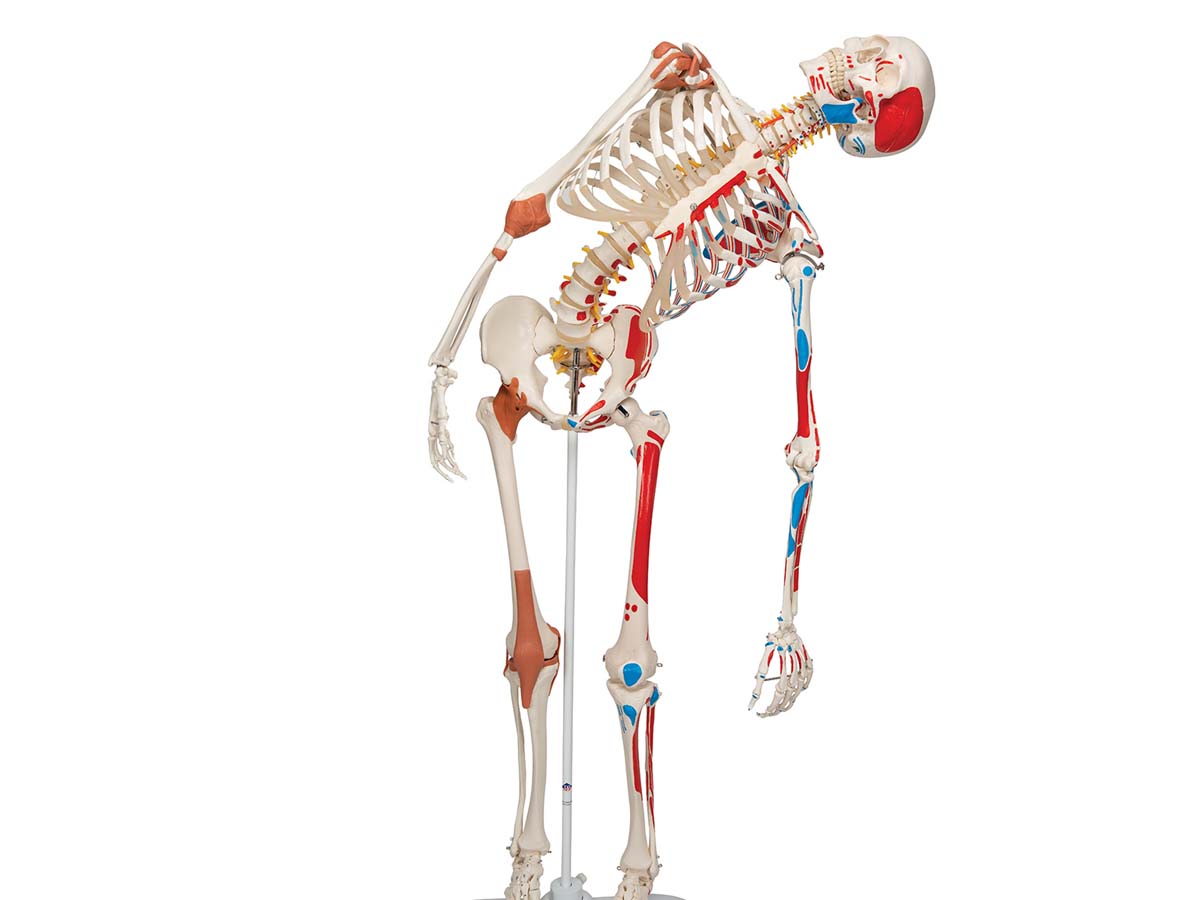 Sam bietet alle Vorzüge eines 3B Scientific® Skelettes. Zusätzlich können Sie mit Sam die Bewegungen des Schädels in den Kopfgelenken demonstrieren und aufgrund der vollkommen flexiblen Wirbelsäule die natürlichen Körperhaltungen nachstellen. Besonders die einzigartige Kombination von Muskelursprüngen und -ansätzen, flexiblen Gelenkbändern und flexibler Wirbelsäule mit Bandscheibenvorfall zwischen dem 3. und 4. Lendenwirbel machen bei diesem Top-Modell mehr als 600 Strukturen von medizinischem und anatomischem Interesse deutlich. Jetzt neu auf stabilem Metallstativ mit 5 Rollen!