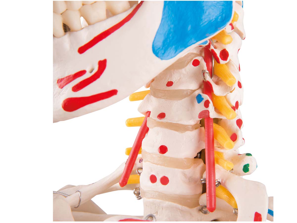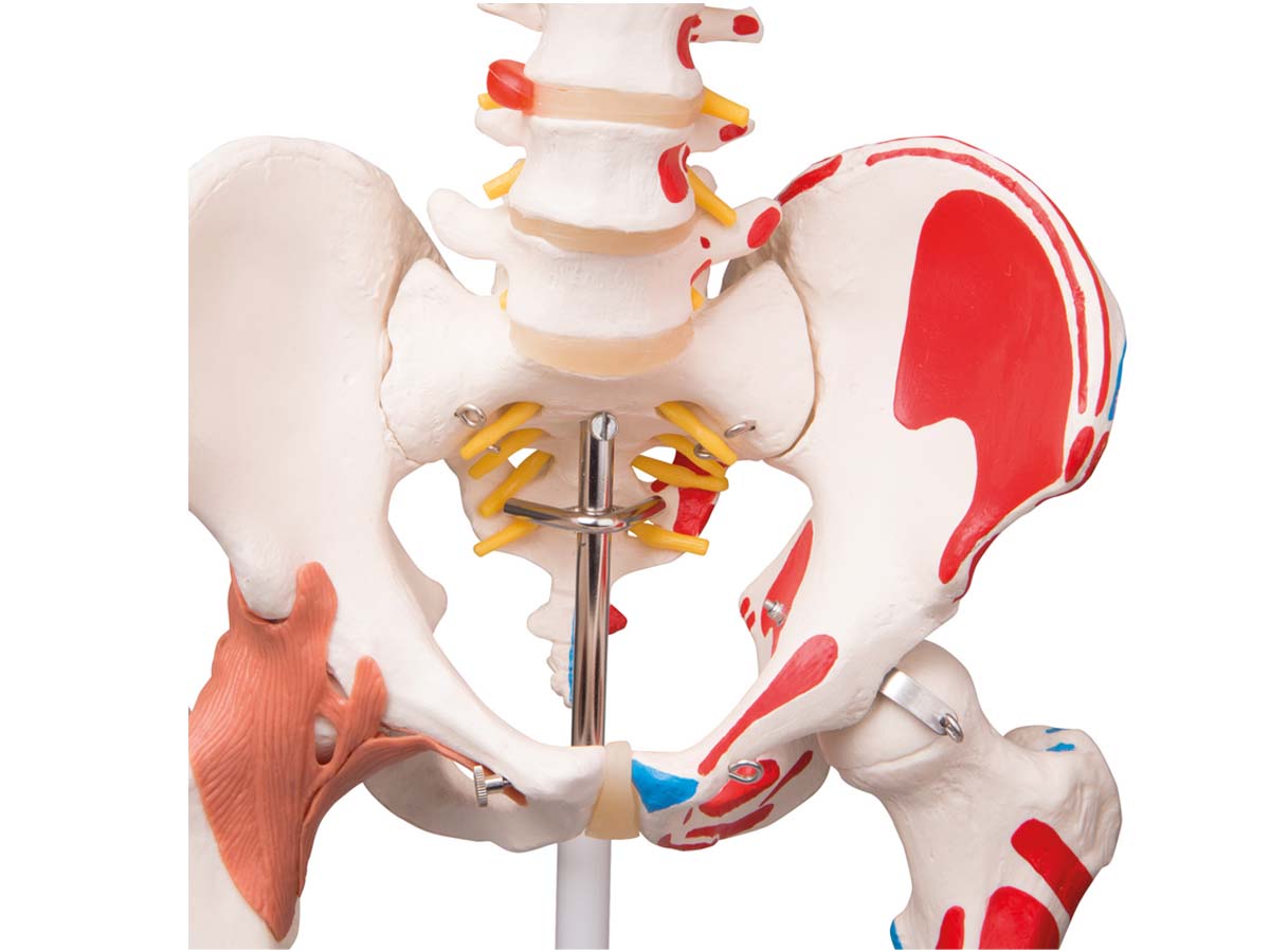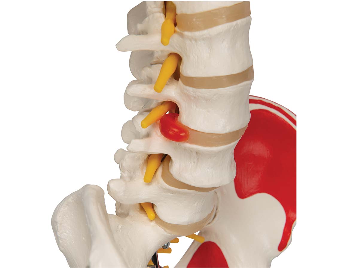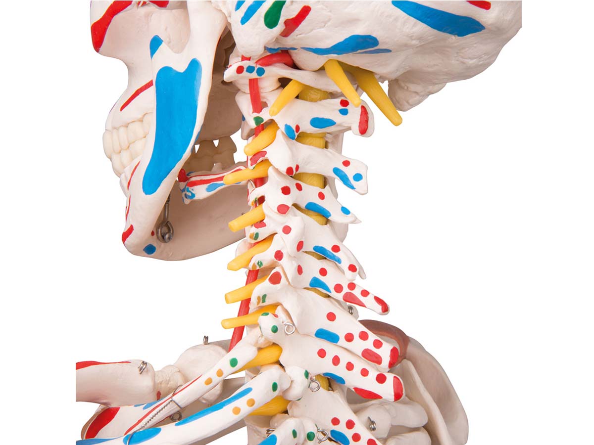 Sam bietet alle Vorzüge eines 3B Scientific® Skelettes. Zusätzlich können Sie mit Sam die Bewegungen des Schädels in den Kopfgelenken demonstrieren und aufgrund der vollkommen flexiblen Wirbelsäule die natürlichen Körperhaltungen nachstellen. Besonders die einzigartige Kombination von Muskelursprüngen und -ansätzen, flexiblen Gelenkbändern und flexibler Wirbelsäule mit Bandscheibenvorfall zwischen dem 3. und 4. Lendenwirbel machen bei diesem Top-Modell mehr als 600 Strukturen von medizinischem und anatomischem Interesse deutlich. Jetzt neu auf stabilem Metallstativ mit 5 Rollen!