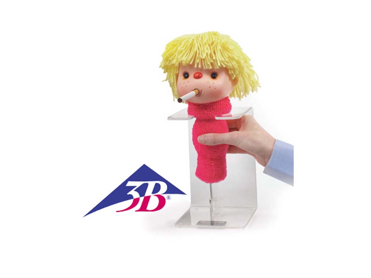 Smokey Sue demonstriert auf eindringliche Weise, wieviel Teer sich beim Rauchen einer einzigen Zigarette in der Lunge sammelt. Der normalerweise direkt in die Lunge inhalierte Teer wird zu diesem Zweck in einem transparenten Röhrchen gesammelt. Mit Plexiglasstativ, 5 wiederverwendbaren Sammelröhrchen und Transporttasche.