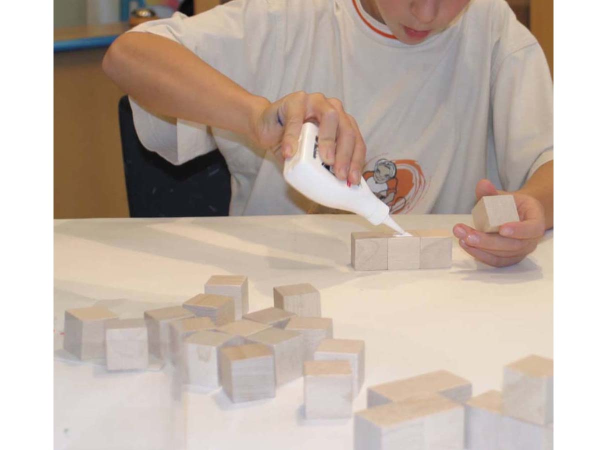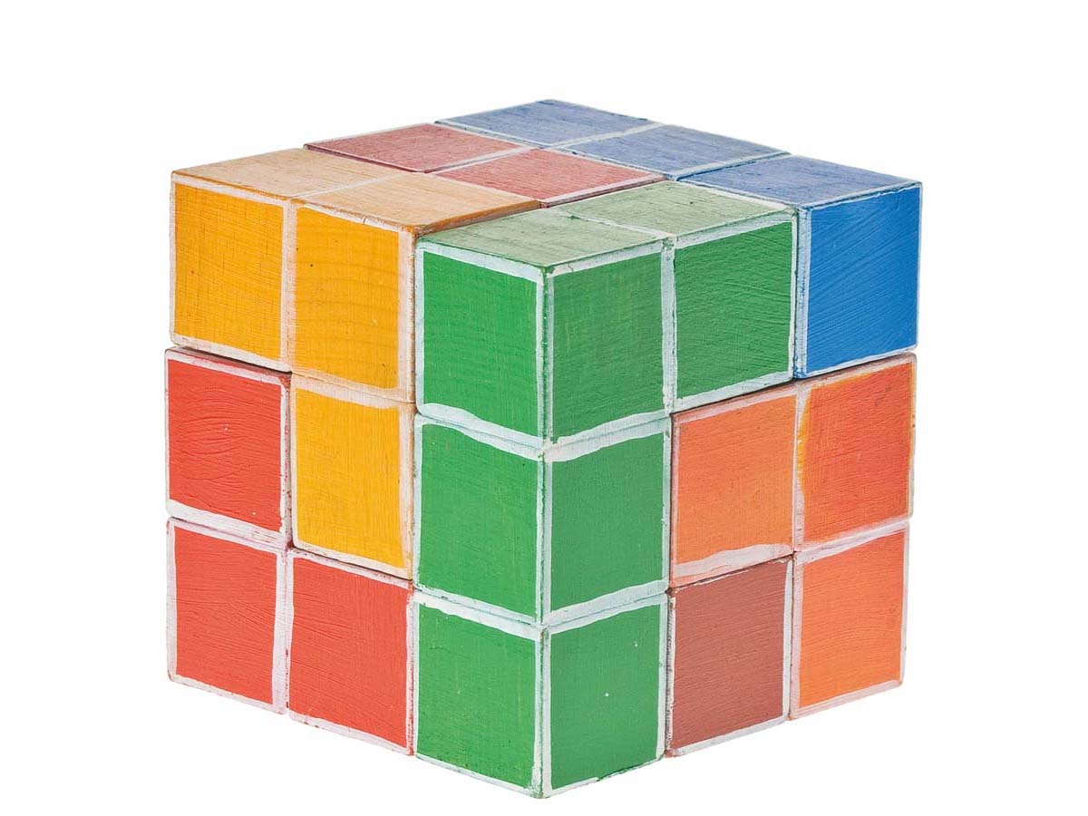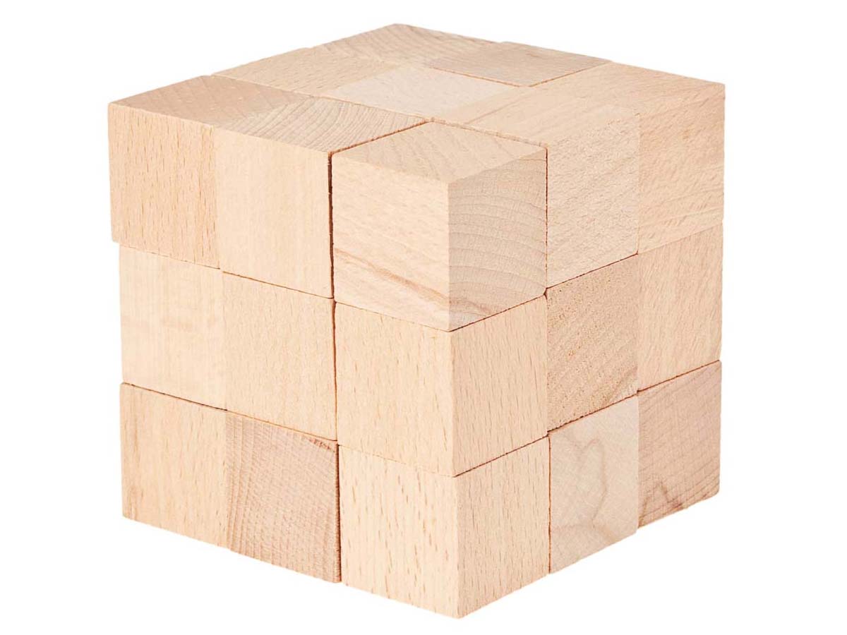 Der Würfel ist ein 3D-Puzzle, bestehend aus 27 Holzwürfeln beliebiger Kantenlänge. Aus diesen Holzwürfeln werden nach Anleitung 7 sogenannte SOMA-Teile hergestellt.
