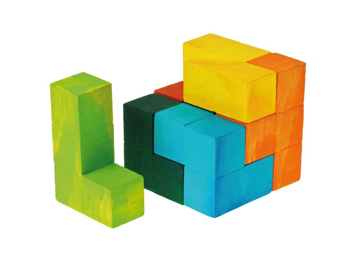 Diese 7 Teile richtig zusammengesetzt ergeben den SOMA-Würfel. Fördert das räumliche Vorstellungsvermögen und die Kreativität beim Erfinden weiterer Figuren.