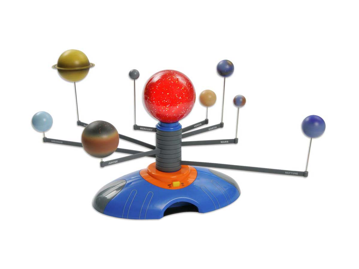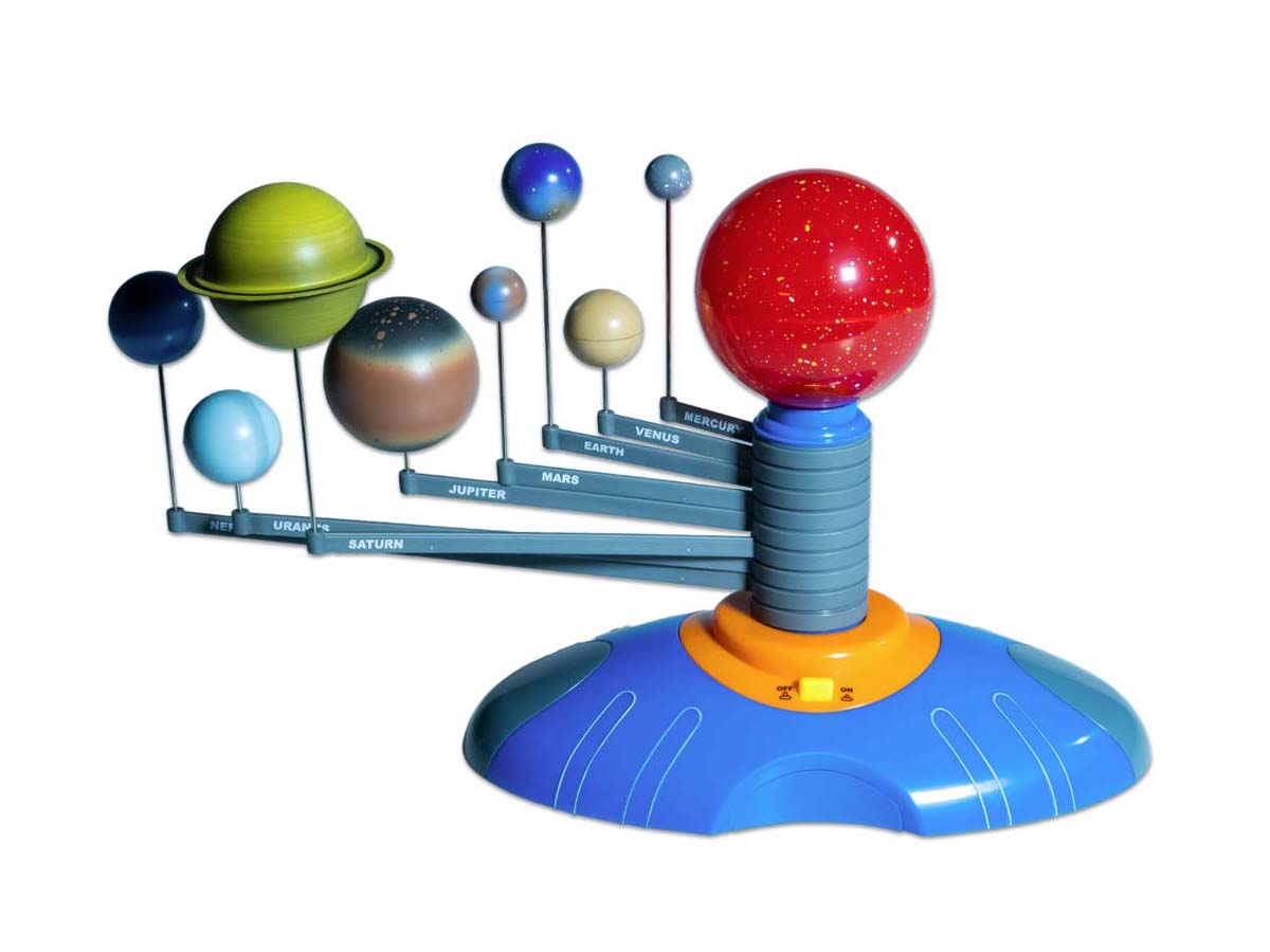 Das anschauliche Modell lehrt viele interessante Fakten und zeigt, wie sich die Planeten um die beleuchtete Sonne bewegen.