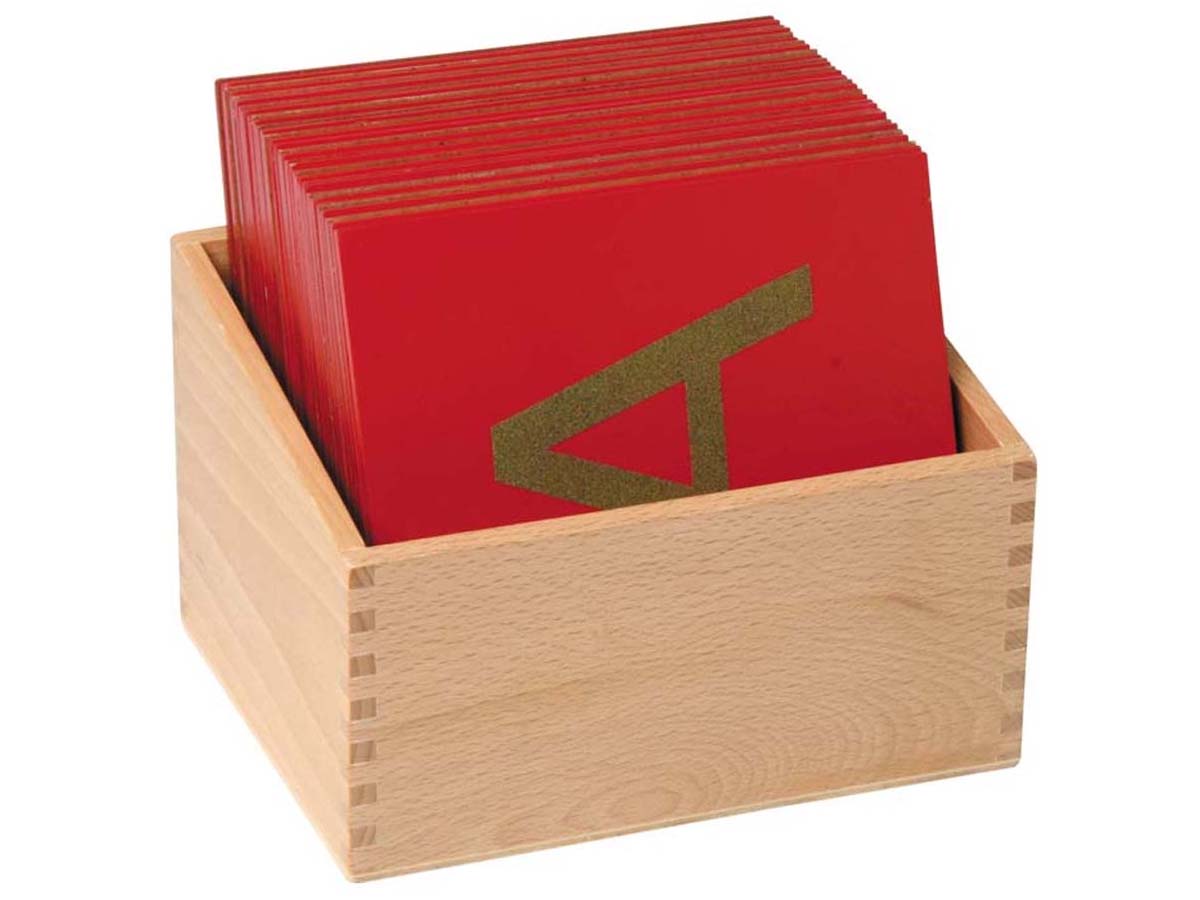 Allzeit griffbereit und ordentlich verstaut, warten die Fühlbuchstaben in der Holz-Sortierbox auf ihren Einsatz. Sie benötigen je eine Box für die Kleinbuchstaben und eine für die Großbuchstaben.