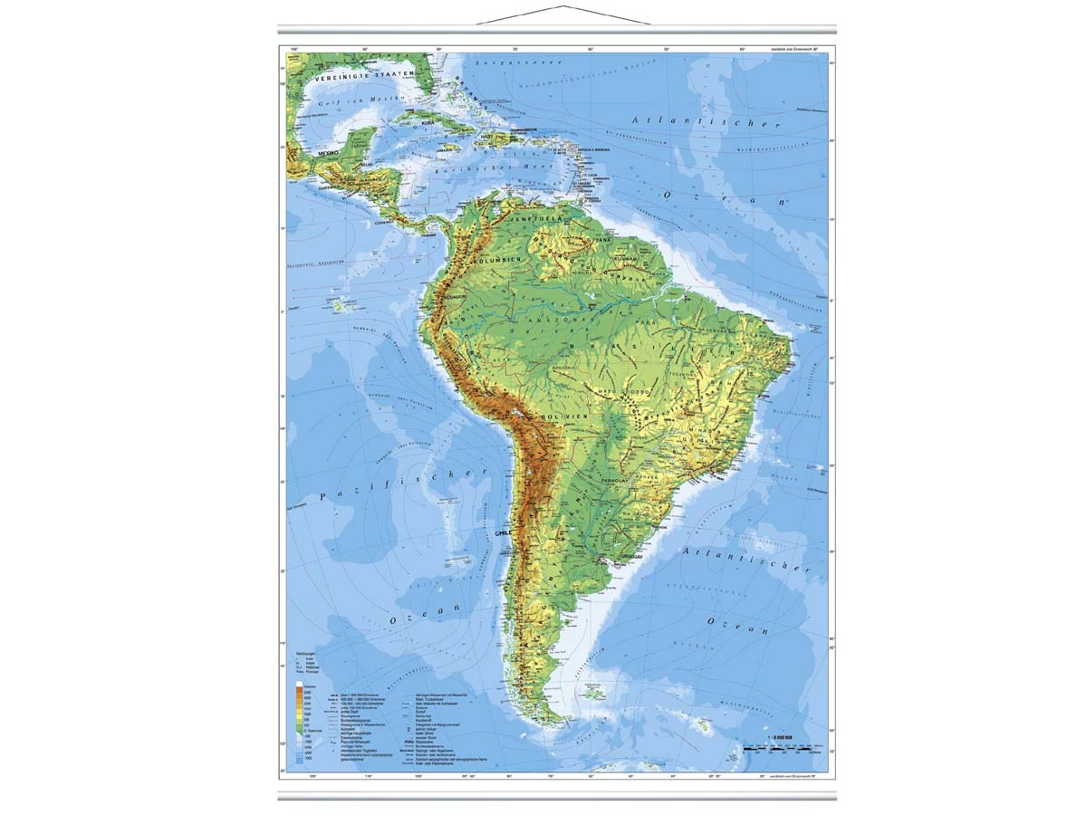 Wandkarte Südamerika physisch