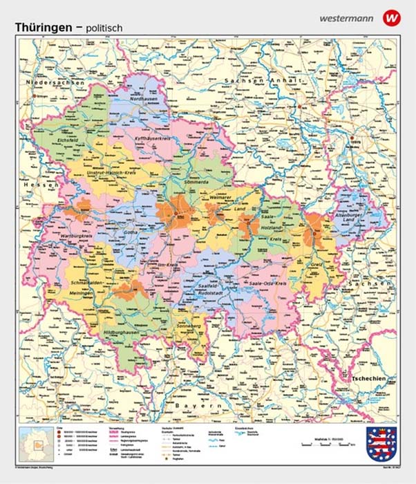 Maßstab 1:175 000, Format 147 x 171 cm, beschreib- /abwaschbar