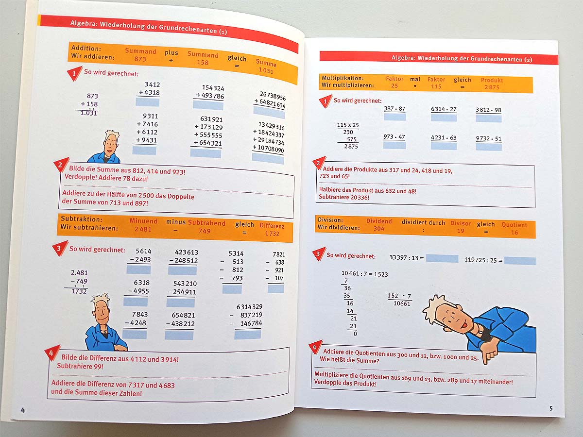 Die Grundrechenarten, Geometrie und Algebra – alle wesentlichen Lerninhalte werden gleichermaßen abgedeckt und der beigefügte Lösungsteil ermöglicht eine einfache und praktische Lern- und Erfolgskontrolle.