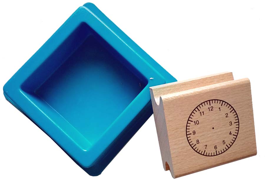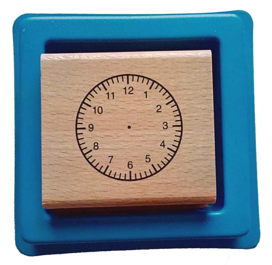 Holzstempel ø 6 cm mit Ziffen von 1-12 Uhr In Kunststoffschachtel