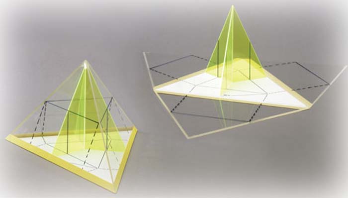Stichworte: Körper, Mathematik - Klasse 5 bis 12, Einzelmodelle, Pyramiden, Unregelmäßige Pyramide mit ungleichen Neigungswinkeln
